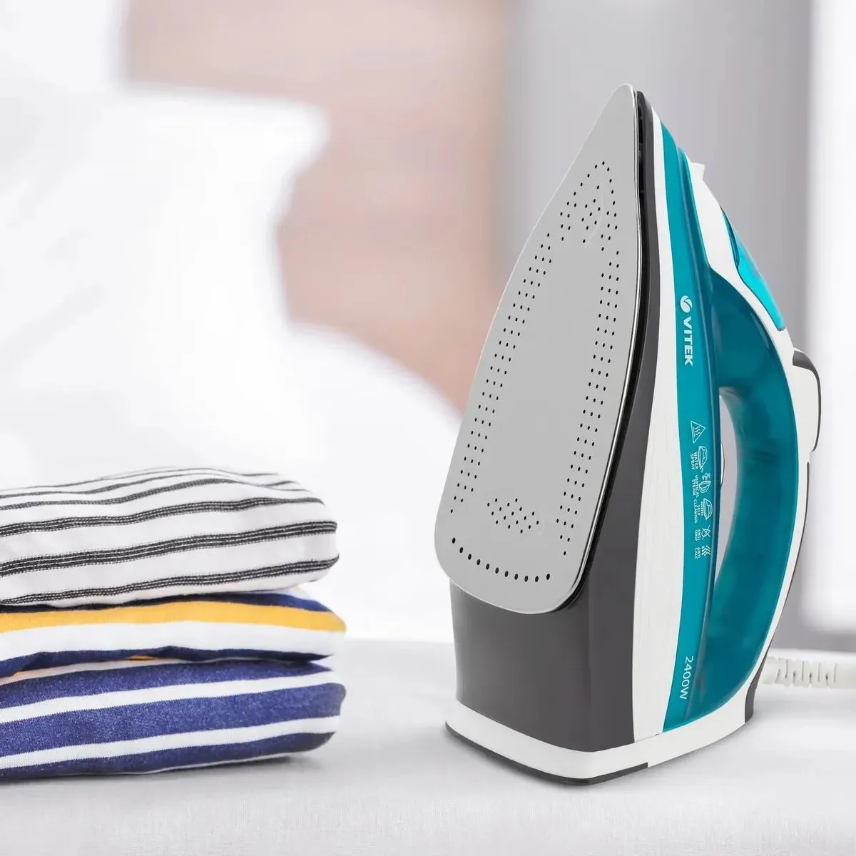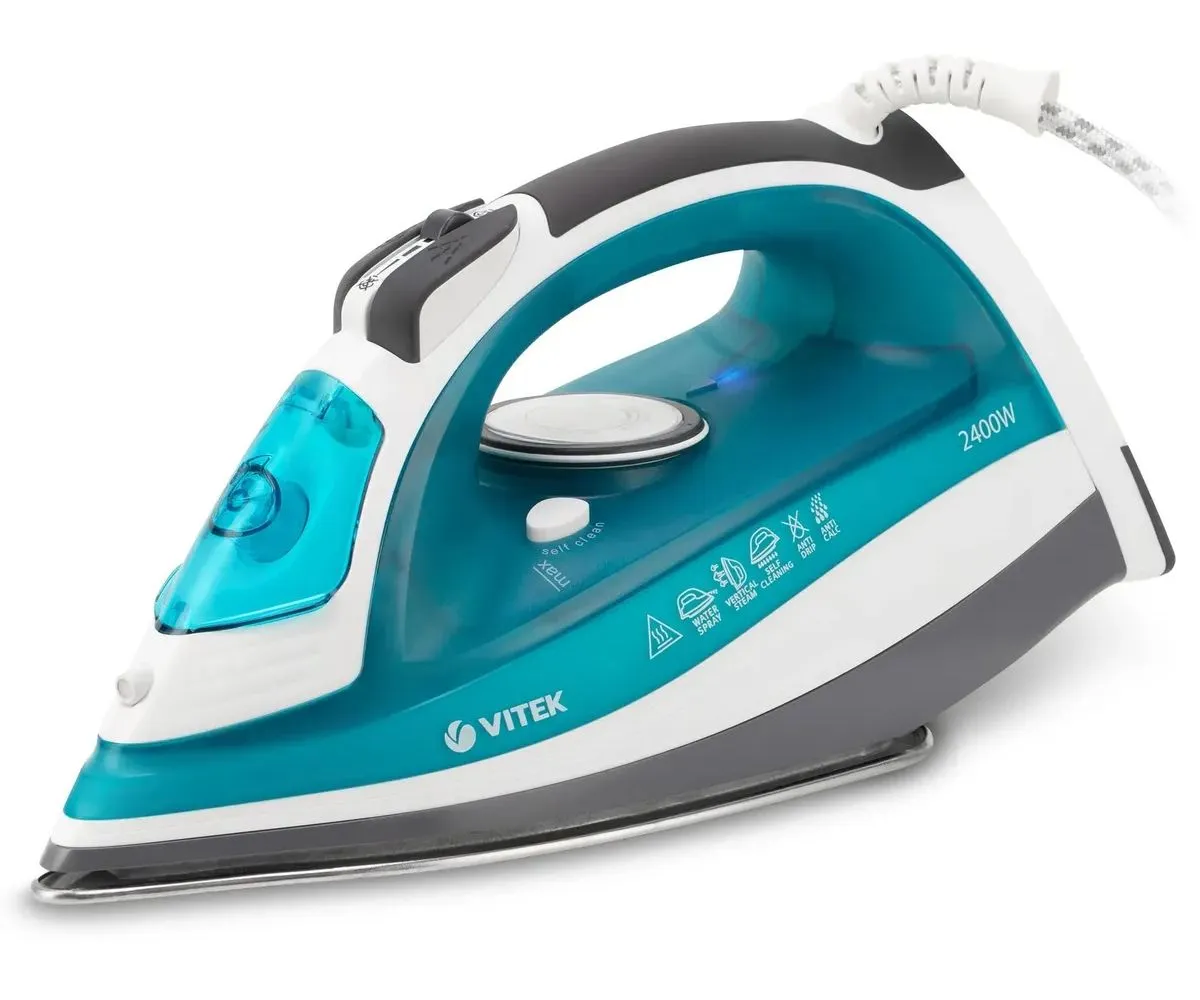 Утюг VITEK VT-1265 EM с прочной подошвой из нержавеющей стали и функцией защиты от накипи – это прекрасный повод, чтобы, наконец, полюбить гладить. Благодаря функции разбрызгивания, а также регулируемой постоянной подаче пара вы будете намного легче справляться даже с самыми неподатливыми тканями. А в особо сложных случаях на помощь придет единовременная усиленная подача пара. Система самоочистки резервуара и функция «Антикапля», предотвращающая вытекание воды из подошвы, избавят ваше белье от появления случайных пятен и загрязнений. Длинный сетевой шнур с шаровым креплением и функция вертикального отпаривания обеспечат максимальное удобство и необходимое пространство для маневра. А если нужно, вы всегда сможете отключить подачу пара, чтобы использовать утюг в режиме сухого глажения.