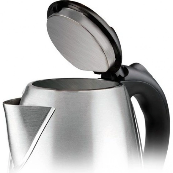 Электрочайник Maxwell MW-1055 ST представлен в металлическом корпусе серебристого цвета. Он обладает оптимальным объемом 1.8 л, что позволит вскипятить воду для чая на всю семью. Мощности нагревательного элемента в 2200 Вт хватит, чтобы нагреть жидкость до 100 °С за несколько минут. При этом сам нагревательный элемент скрыт под пластиной из нержавеющей стали, благодаря чему внутреннее пространство чайника гладкое. Это позволит легко отмывать прибор от накипи. Встроенный в носик электрочайника фильтр избавляет от попадания частиц накипи в чашку.