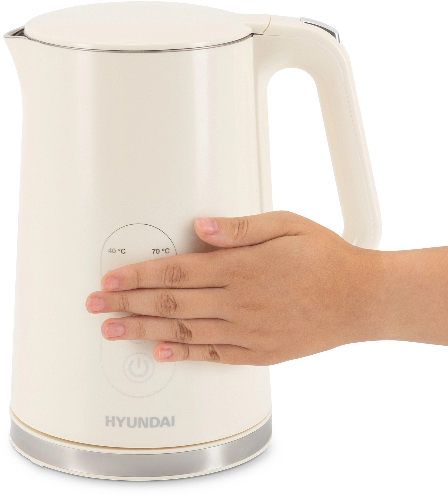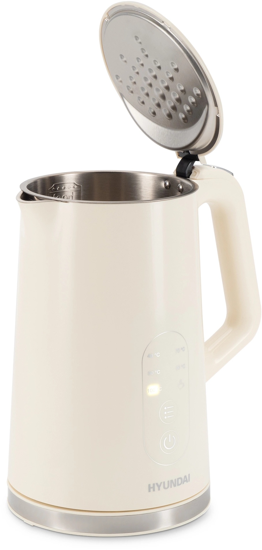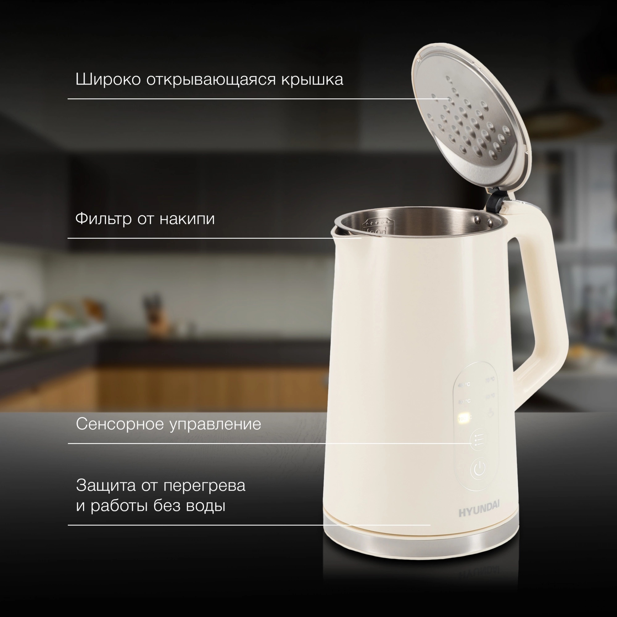 Электрочайник HYUNDAI - это сочетание элегантного дизайна и высоких технологий, предназначенное для удобства и эффективности на вашей кухне. Выполненный в бежевом цвете, этот чайник станет стильной деталью интерьера, гармонично вписываясь в любой кухонный ансамбль.