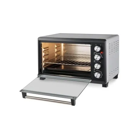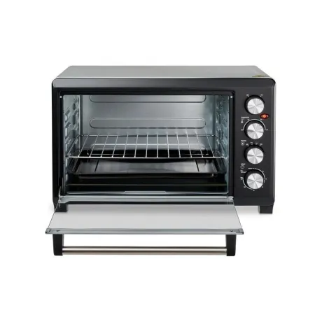 Иногда на кухне не хватает места для размещения полноценного духового шкафа. Но без столь многофункционального девайса готовить бывает сложно. Для таких случаев и существует Hyundai MIO-HY075. Эта миниатюрная печь ничем не уступает в функциональности полноценной и превосходно справляется даже со сложными рецептами. Такое возможно благодаря многочисленным режимам готовки, используемым данной моделью. Она имитирует конвектомат, в котором пища готовится благодаря циркуляции прогретого воздуха. Такой метод термической обработки обеспечивает равномерный прогрев всей поверхности блюда. В Hyundai MIO-HY075 можно выбрать и направление, с которого или с которых будет подаваться жар: снизу, сверху или с обоих сразу. Температура также регулируется и варьируется до 250 градусов. Благодаря таким тонким и разнообразным настройкам работу мини-печи можно подстроить для идеального приготовления любого блюда. Также в устройстве предусмотрен и таймер. Каждому из перечисленных параметров соответствует один из четырёх эргономичных поворотных регуляторов. Для удобного определения готовности на лицевой панели устройства также присутствует яркий световой индикатор, который помогает сориентироваться, пора ли начать готовку. Мощность Hyundai MIO-HY075 составляет 2000 Ватт. Её достаточно, чтобы быстро нагревать печь до любого нужного температурного режима. Внутренний объём прибора – 38 литров. Он способен вместить даже большое блюдо. В комплекте с данной моделью поставляются решётка и универсальный эмалированный прямоугольный противень.