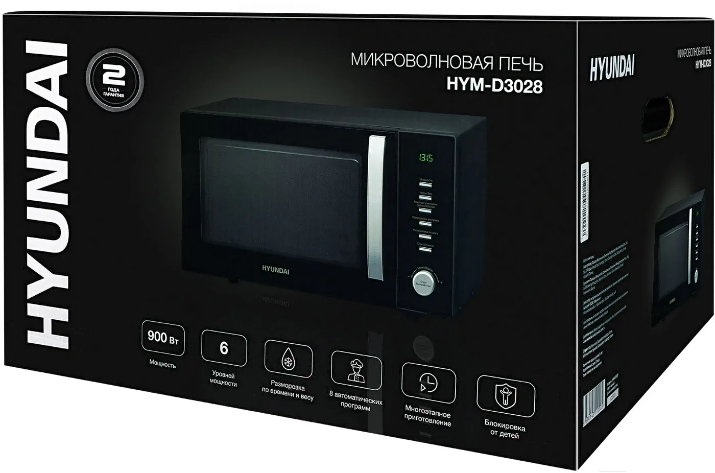 Микроволновая печь Hyundai HYM-D3028 23л. 900Вт черная/серебристый в Санкт-Петербурге