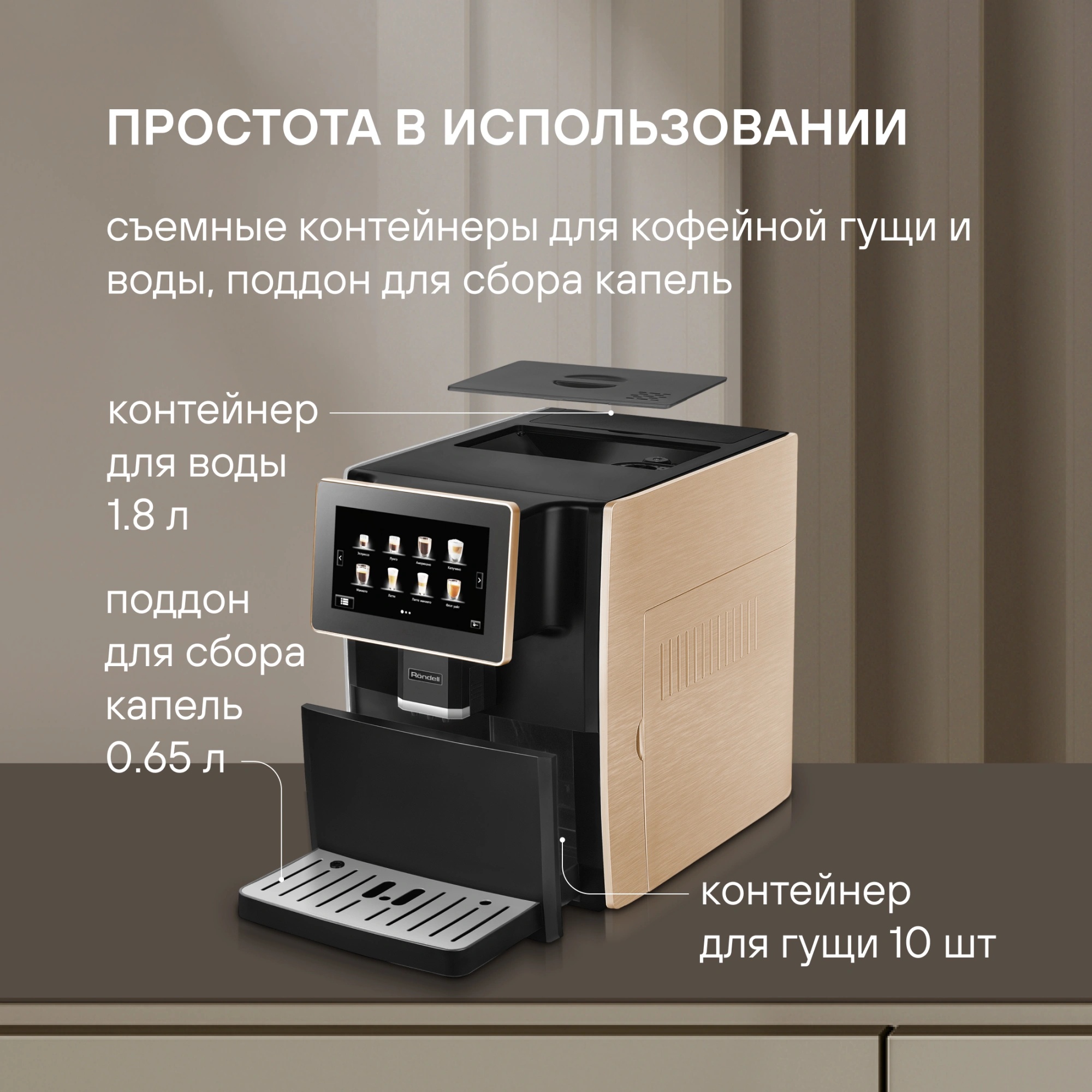 В модели также предусмотрена автоматическая очистка системы молочной пены и декальцинация, которые способствуют продлению срока службы устройства и упрощению ухода за устройством. Стильная и функциональная кофемашина RDE-1111 с первого запуска станет вашим любимым баристой на долгие годы!