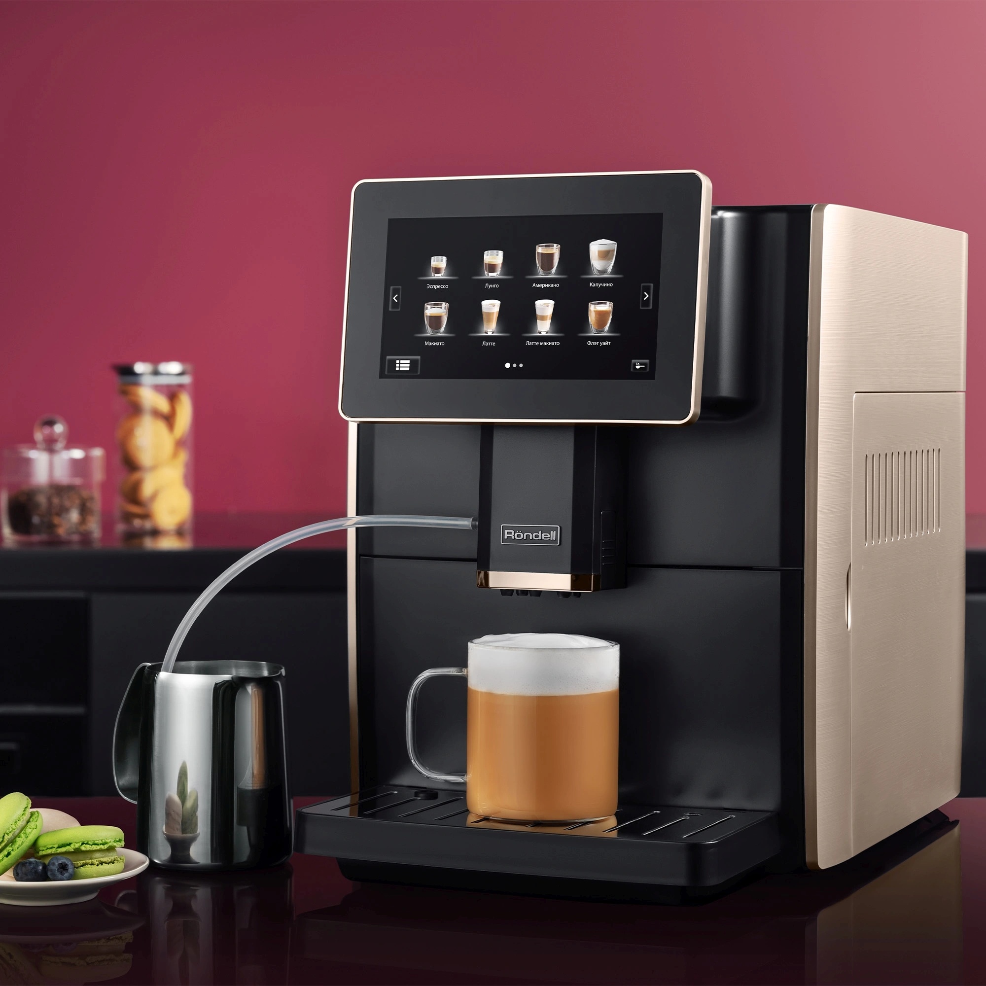 Автоматическая кофемашина RDE-1111 готовит вкуснейшие напитки как профессиональный бариста! С помощью одного касания сенсорного TFT-дисплея вы сможете приготовить лунго и латте, американо и капучино, эспрессо и макиато, горячее молоко и нежнейшую молочную пенку. Прибор оснащен итальянской помпой фирмы ULKA с давлением 19 бар для максимального раскрытия вкуса любого сорта кофе.