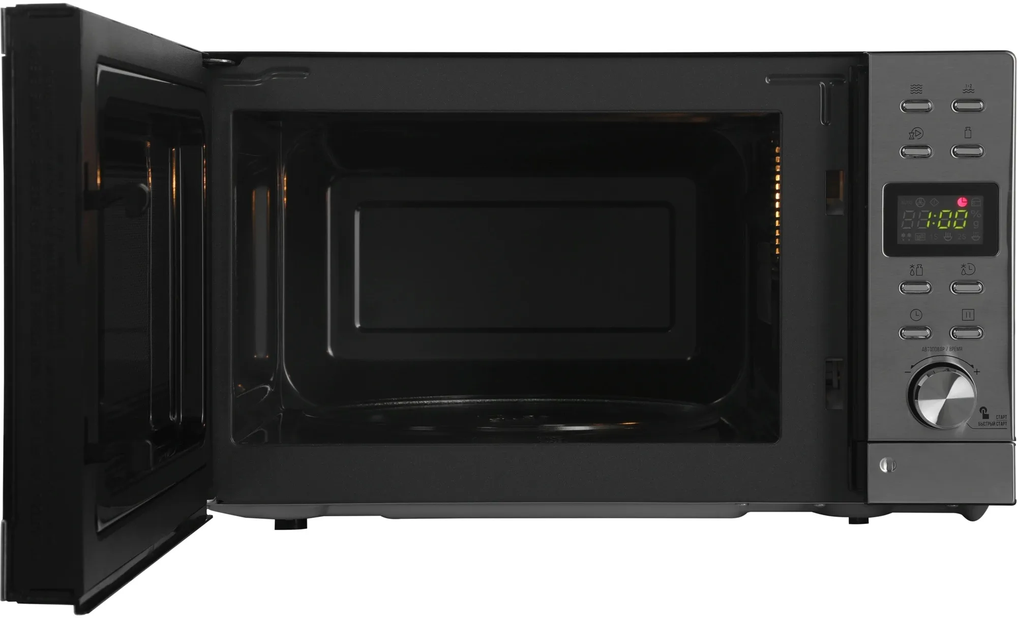 Микроволновая печь Hyundai HYM-D3043 в серебристом корпусе легко впишется в любой интерьер. Компактные размеры и объем 20 литров подходят как для небольшой кухни, так и для офиса.. Мощность 700 Вт помогает быстро разогревать блюда, сохраняя вкус и текстуру еды. Электронное управление с поворотным регулятором делает процесс использования интуитивно понятным. Поворотный стол диаметром 245 мм равномерно прогревает пищу, исключая холодные зоны.. Таймер на 95 минут расширяет возможности приготовления, а шесть уровней мощности дают свободу выбора нужного режима для разных продуктов.. Открывание дверцы кнопкой и направление открытия справа налево делают эксплуатацию комфортной. Дисплей упрощает контроль за процессом приготовления, а звуковой сигнал подскажет, когда блюдо готово. Восемь программ включают автоматический разогрев, приготовление, ускоренный режим и экспресс-готовку, что помогает подобрать подходящий вариант для любого блюда. Функция блокировки от детей защищает от случайного включения, делая использование безопасным. В комплекте русскоязычная инструкция, с которой освоение всех возможностей прибора занимает минимум времени.