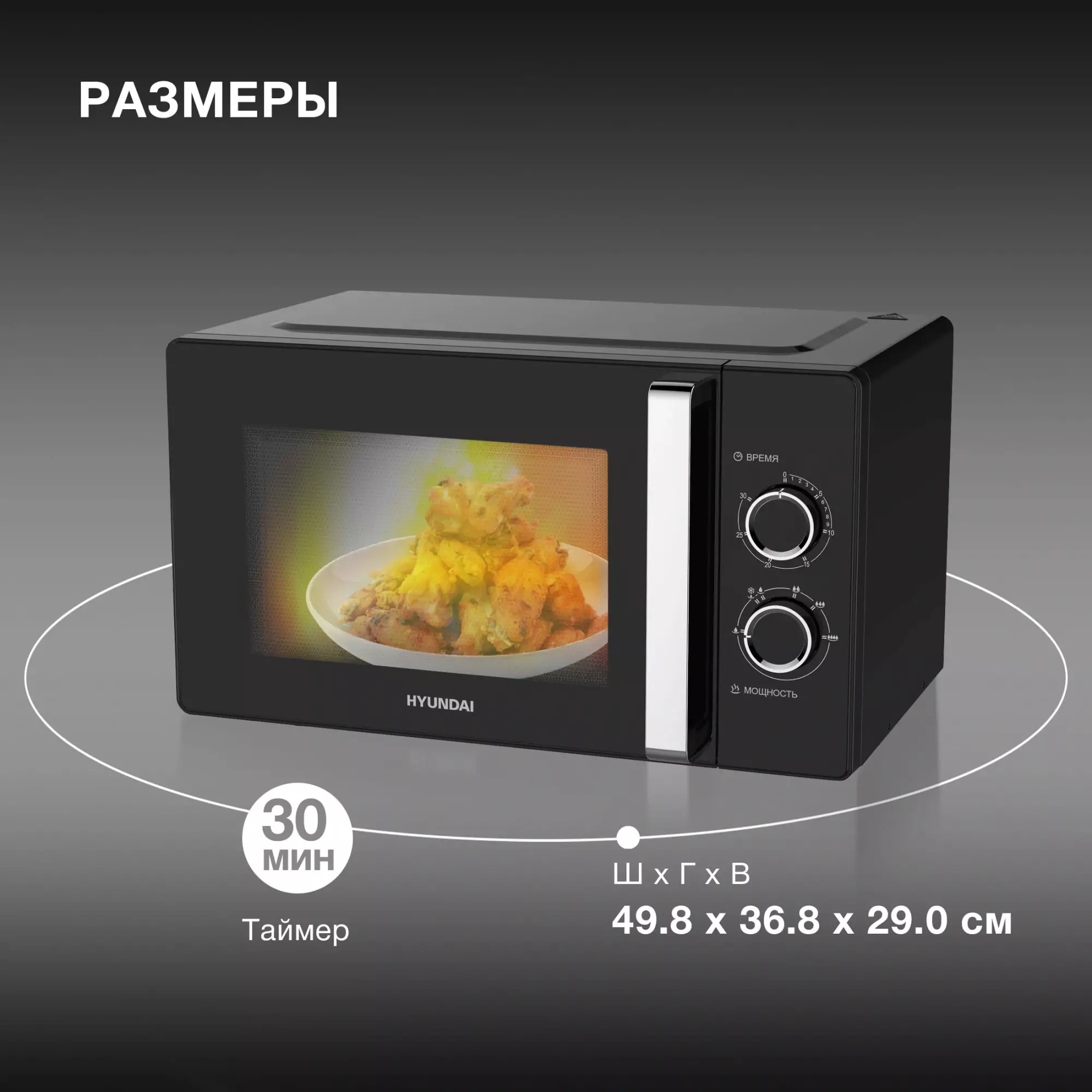 Микроволновая печь Hyundai HYM-M2012 23л. 800Вт черная/хром в Санкт-Петербурге