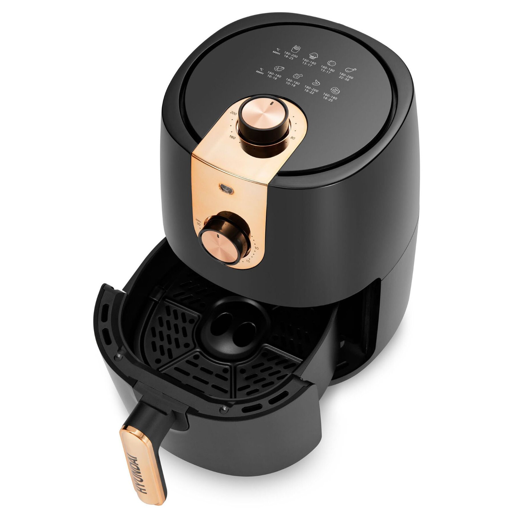 Hyundai HYF-3553 – это компактный аэрогриль в минималистичном исполнении и оригинальном дизайне.