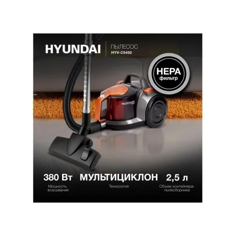Описание товара Пылесос Hyundai HYV-C5450 2200Вт черный/оранжевый