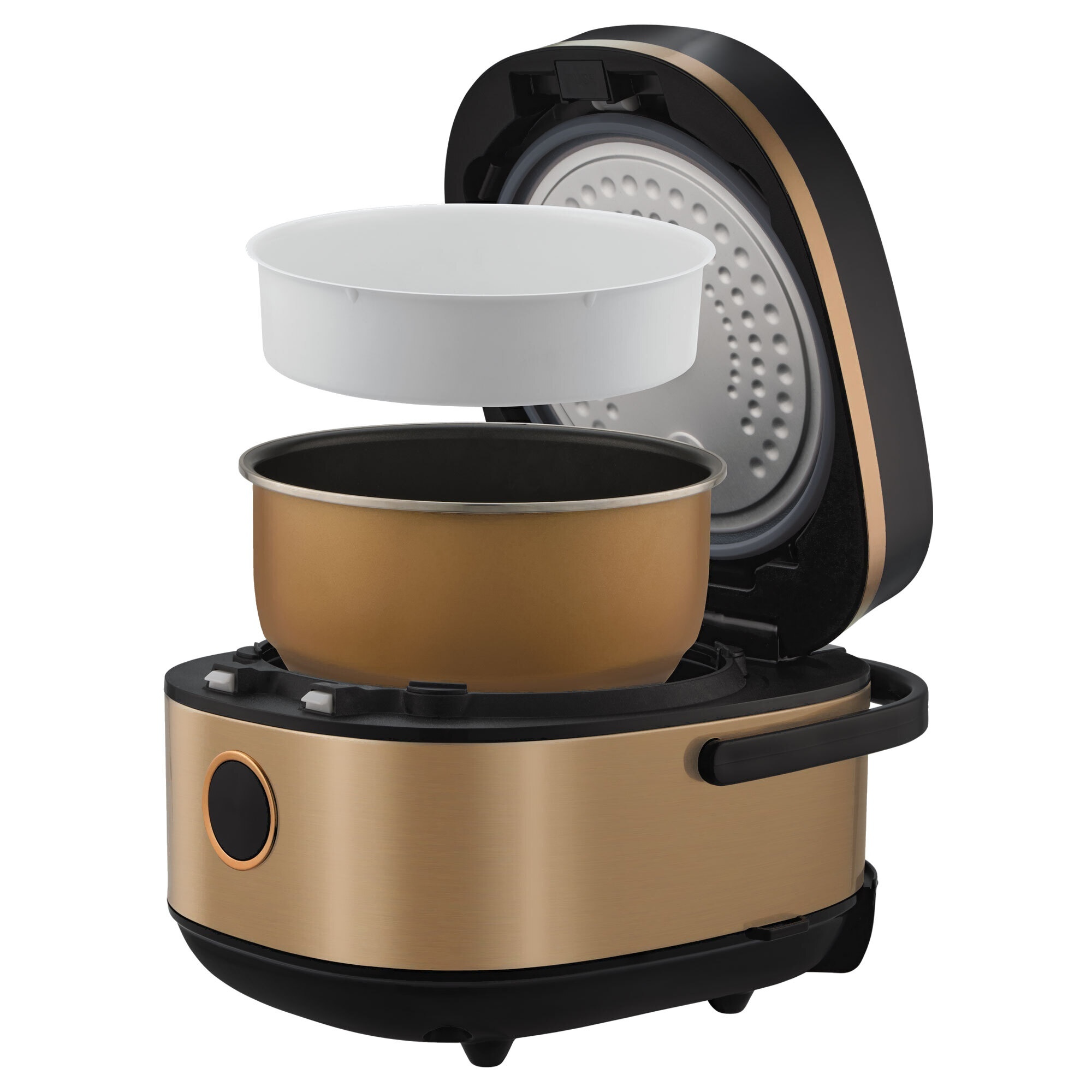 Мультиварка с индукционным нагревом RDE-1621 идеально сочетает в себе функциональность и современный дизайн. Это устройство станет незаменимым помощником для приготовления полезной еды на вашей кухне! Оснащенный индукционным нагревом, прибор обеспечивает быстрое и равномерное распределение тепла, гарантируя идеальный результат. Объем чаши составляет 4 литра — достаточно для приготовления большого количества блюд для всей семьи. Антипригарное покрытие чаши мультиварки облегчает процесс приготовления и упрощает уход за устройством. Сенсорная панель управления делает использование мультиварки максимально удобным и интуитивно понятным. Мультиварка RDE-1621 оснащена 13 автоматическими программами, а также режимом «Мультиповар», позволяющим самостоятельно настраивать устройство в зависимости от нужного рецепта. Функция поддержания тепла помогает сохранить блюда горячими до подачи на стол, а возможность отложенного старта на 24 часа позволяет настроить приготовление блюд заранее. В комплект мультиварки входят пластиковый лоток для приготовления на пару, мерная чаша, ложка для риса, ложка для супа, решетка для фритюра и книга рецептов, расширяющая кулинарные горизонты. Купите индукционную мультиварку RDE-1621 и наслаждайтесь вкусной и полезной пищей вместе с семьей и друзьями!