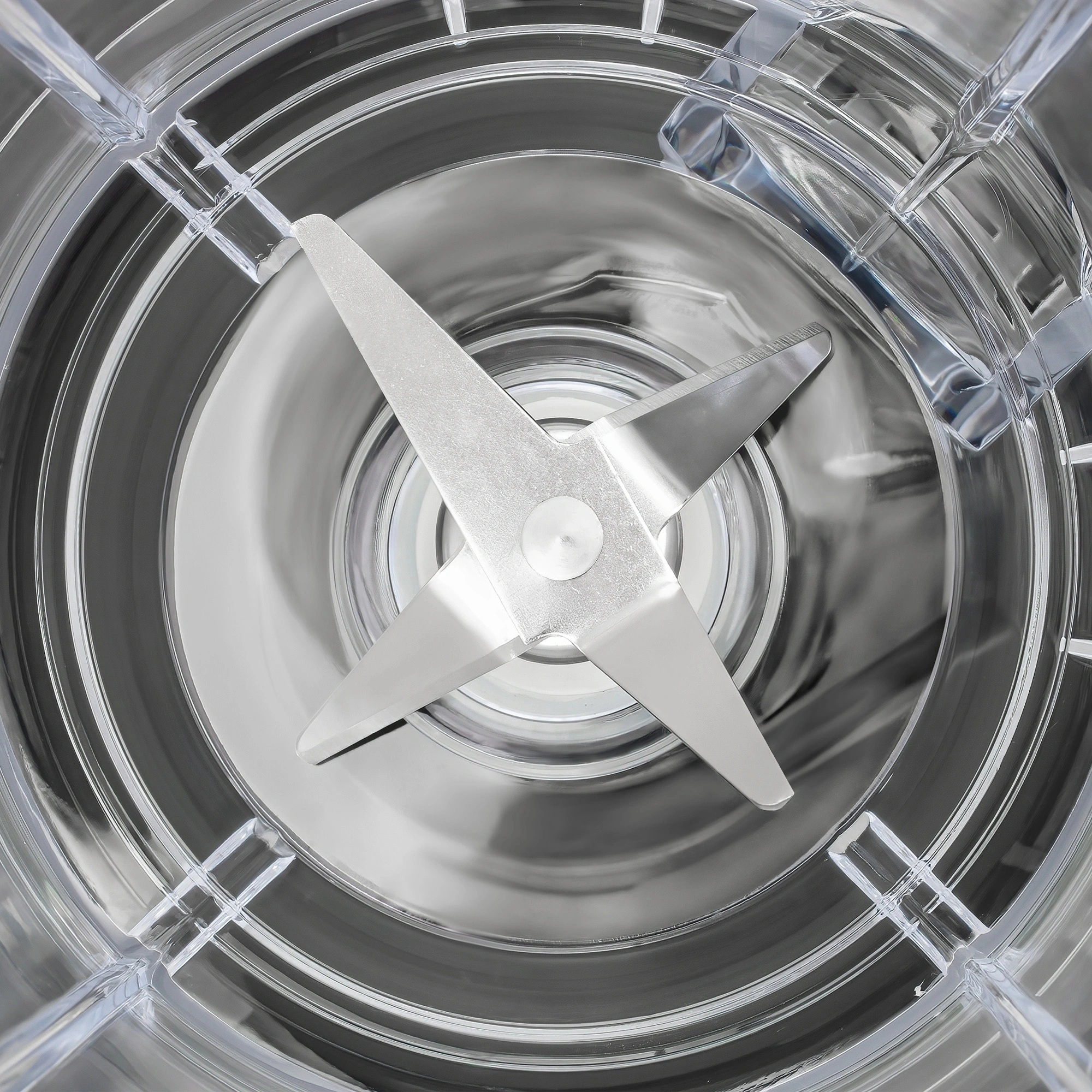 Блендер стационарный Vitek VT-8511 с 4 скоростями и импульсным режимом обеспечивает плавную настройку подходящей производительности лезвий для приготовления смузи, жидкого питания, коктейлей, теста на блины, соусов. Прибор изготовлен в пластиковом корпусе с нескользящими ножками. В прозрачном кувшине с полезным объемом 1.5 л предусмотрена градуированная шкала на стенках. В крышке есть отверстие и мерный стакан емкостью 20 мл. Это предусматривает возможность добавления необходимых ингредиентов в чашу в процессе работы блендера Vitek VT-8511.