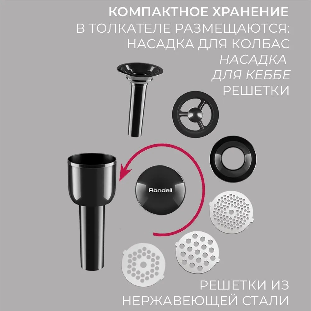 Описание товара Мясорубка Rondell RDE-1455 2000Вт стальной