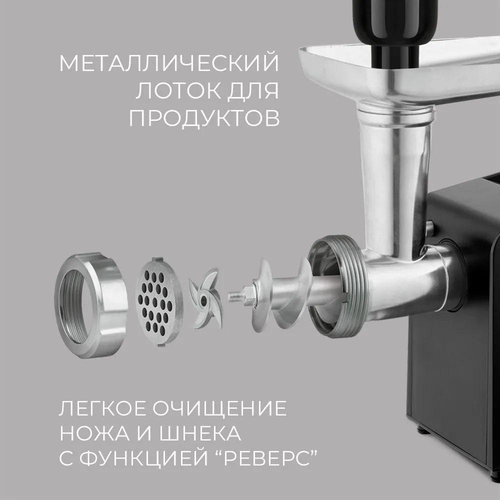 Мясорубка RDE-1455 с максимальной мощностью 2000 Вт позволит за считанные секунды получить идеальный фарш для ваших любимых блюд. А используя насадки для сосисок и кеббе, вы сможете с легкостью приготовить мясные деликатесы. Пониженный уровень шума делает использование мясорубки комфортным в любое время суток даже при полной загрузке устройства. Рабочее лезвие прибора и 3 диска для измельчения, изготовленные из нержавеющей стали превосходного качества, прослужат вам долгие годы. Металлический лоток для продуктов обладает повышенной износостойкостью и прослужит в два раза дольше пластиковых аналогов. Для эффективного очищения ножа предусмотрена функция «Реверс». Устройство продумано до мелочей! Длина шнура составляет 1 метр, что позволяет разместить мясорубку на удобном расстоянии от розетки. Внутри корпуса толкателя для продуктов имеется специальный отсек для хранения насадок. Чтобы мясорубка не скользила по столу в процессе работы, прибор оснащен прорезиненными ножками. В случае перегрева или перегрузки устройство автоматически отключится. Удобная ручка на корпусе прибора позволяет быстро и легко убрать его на хранение. Купите мясорубку RDE-1455, чтобы ежедневно баловать близких действительно вкусной домашней едой!