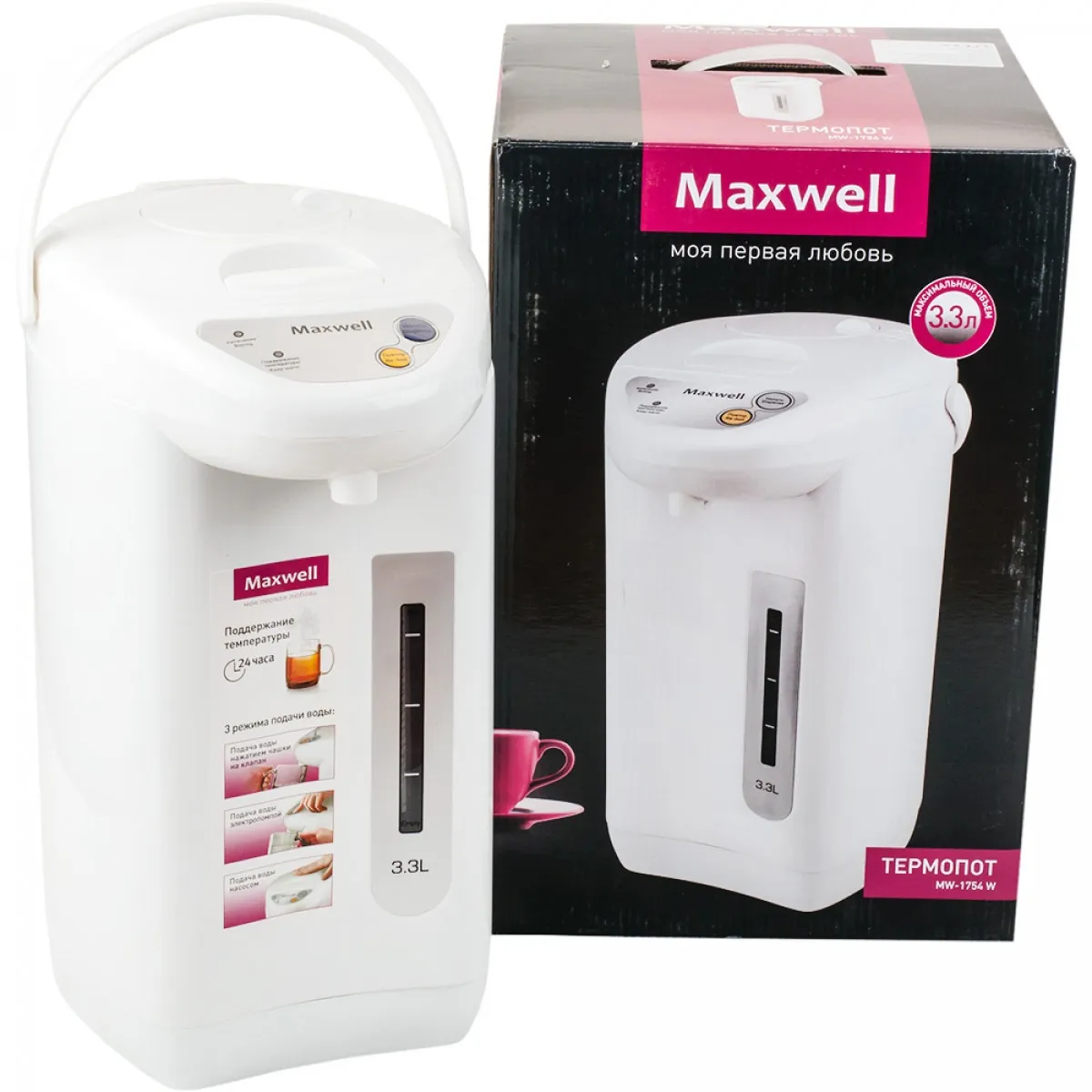 Термопот Maxwell MW-1754 3.3л. 750Вт белый - фото, характеристики, описание и цена представлены на карточке товара. Для того, чтобы сразу узнать о поступлении этого товара в наш интернет-магазин, вам надо подписаться на уведомление по email, оставив адрес своей электронной почты в форме выше на данной странице.