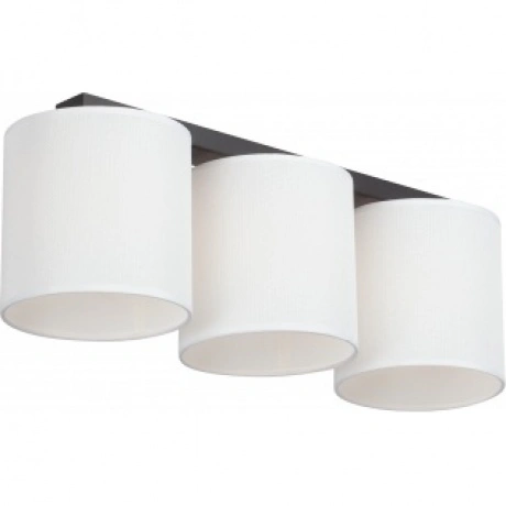 потолочная люстра vitaluce v2882-1/3pl с тремя лампами e27, максимальной мощностью 40 вт каждая, общей мощностью 120 вт. длина светильника 67,5 см, ширина 20 см, высота 24 см. материал основания металл, плафоны текстильные. цвет каркаса чёрный.