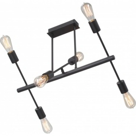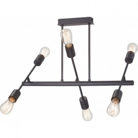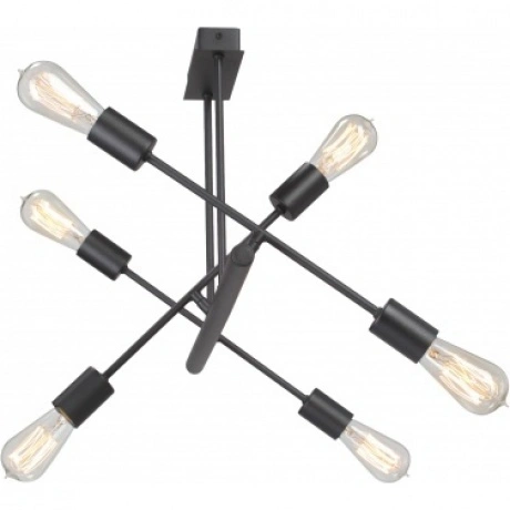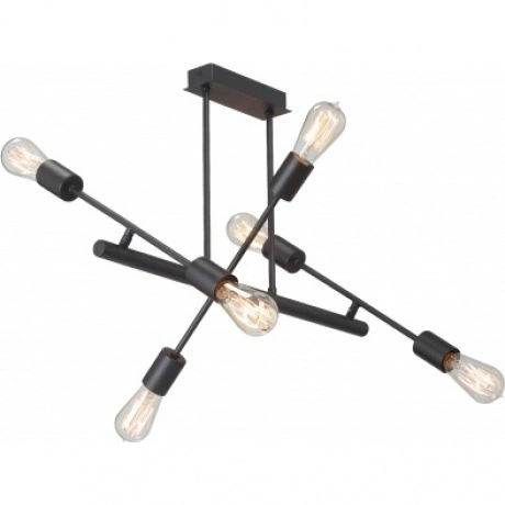 люстра vitaluce v3010-1/6pl в стиле лофт, черного цвета, с металлическим основанием и цоколями e27 для ламп накаливания.