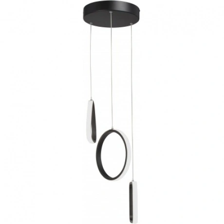 светодиодный подвесной светильник с тремя источниками света, общей мощностью 34 вт и световым потоком 2100 лм. цветовая температура нейтрального белого света (3900-4200к) подходит для жилых и коммерческих помещений. металлический каркас черного цвета, стиль хай-тек. освещает площадь до 8 кв.м, питание от сети 220в. отсутствие необходимости замены ламп благодаря встроенным led-модулям. компактные габариты (42х84х42 см) и минималистичный дизайн.