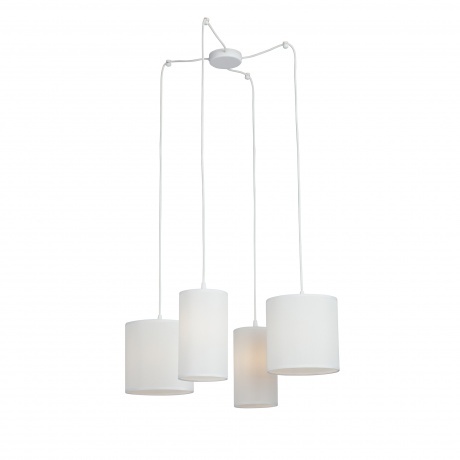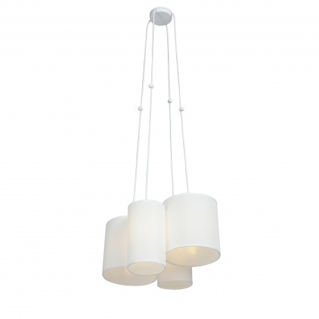 люстра v3089-0/4s vitaluce выполнена в стиле арт-деко, имеет 4 лампы с цоколем e27 и максимальной мощностью 40 вт, корпус из металла с текстильными абажурами, высота до 123 см, диаметр 40 см, подходит для освещения площадью до 12 кв.м, белого цвета, стильная и функциональная подвесная люстра.