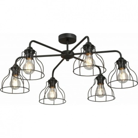 люстра потолочная vitaluce v3102-1/6pl на шесть ламп под цоколь e27 в стиле лофт будет прекрасным дополнением для интерьера с максимальной мощностью лампы 40 вт и высотой 30 см. накладной тип светильника с формой полуовал и черным матовым цветом каркаса и плафона