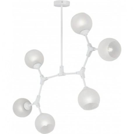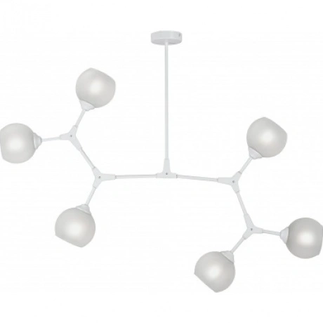 потолочная люстра на штанге vitaluce v3790-0/6pl с 6 плафонами из стекла, мощностью до 40 вт на лампу, стиль хай-тек, цвет белый матовый, подходит для освещения площади до 18 кв.м