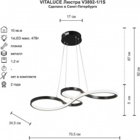 Люстра V3892-1/1S, LED 47Вт, 4000К, 2700лм в Санкт-Петербурге