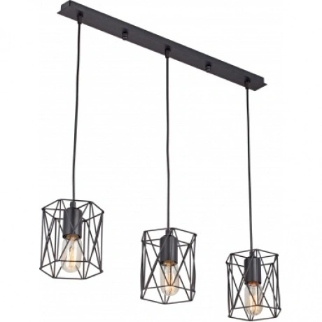 подвесной светильник vitaluce v4382-1/3s с тремя лампами накаливания e27 мощностью до 40 вт каждая, высота регулируется до 100 см, материал основания металл, подходит для освещения площадью до 9 кв.м
