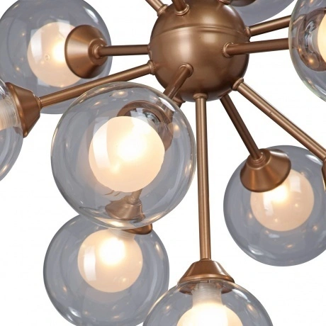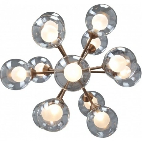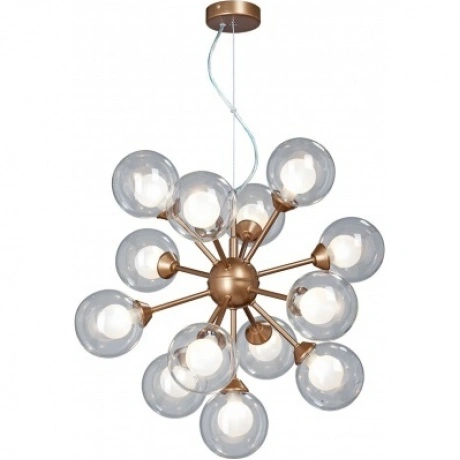 подвесная люстра vitaluce v4855-7/13s с 13 лампами g9 мощностью 28 вт каждая, общая мощность 364 вт, цвет арматуры золото, цвет плафона прозрачный, подходит для основного освещения помещений до 26 кв.м.