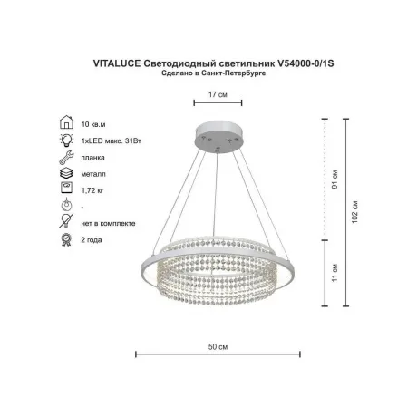 Люстра V54000-0/1S, LED 31Вт, 3900-4200К, 2640лм в Санкт-Петербурге