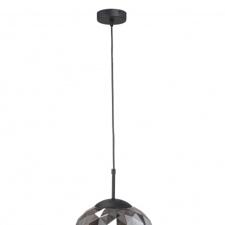 подвесной светильник vitaluce v2813-1/1s выполнен в стиле модерн, имеет металлическое основание и стеклянный плафон в форме шара диаметром 30 см, оснащён одной лампой с цоколем e27 и максимальной мощностью 40 вт, регулируемая высота от 45 до 133.5 см, цвет каркаса чёрный, плафон дымчатый