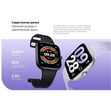 Xiaomi Redmi Watch 5 — это смарт-часы, которые предлагают широкий спектр функций и возможностей для мониторинга здоровья и фитнеса, а также стильный дизайн и удобное управление. Часы оснащены ярким и четким AMOLED дисплеем, который обеспечивает хорошую видимость даже при ярком солнечном свете. С помощью Xiaomi Redmi Watch 5 можно отслеживать основные показатели здоровья и физическую активность: частоту сердечных сокращений, уровень кислорода в крови, качество сна, подсчет шагов, калорий, расстояния и т.д. Благодаря энергоэффективному дисплею и другим оптимизациям, смарт-часы могут работать до двух недель без подзарядки.