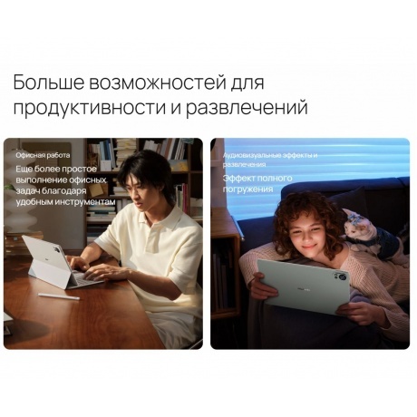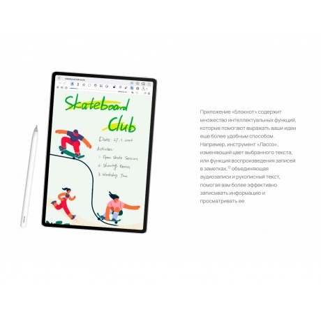 Планшет HUAWEI MatePad – это 2 основные камеры 13 и 8 Мп, аккумулятор на 10100 мАч, 4 динамика с системой шумоподавления, модуль Wi-Fi, экран FullView с частотой обновления 144Гц. На устройстве есть возможность подключить одновременно 2 пары наушников и, например, смотреть видео с друзьями. Экран передает анимацию плавно, благодаря высокой частоте обновления картинки. Аккумулятор HUAWEI MatePad позволит просматривать до 14 часов видео. Процессор HiSilicon Kirin T90A подойдет как для работы с документами и изображениями, так и для игр и рисования. По функциональности – это полноценный компьютер, а по габаритам – компактный планшет. Вы сможете переносить его в небольшом рюкзаке. Корпус защищен от отпечатков специальным покрытием, это делает устройство простым в уходе.