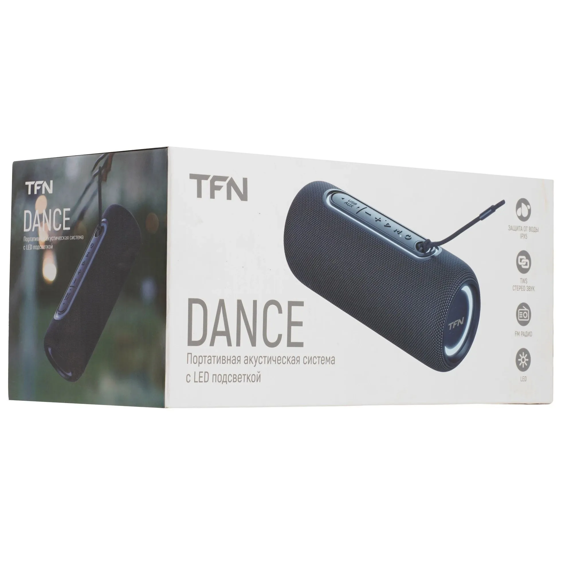 Портативная колонка TFN Dance - это колонка с светодиодной подсветкой и мощностью 16 Вт, которая станет незаменимой как в городской среде, так и на отдыхе на природе. Устройство оснащено функцией TWS, обеспечивающей объемное стереозвучание. Встроенный FM-приемник позволяет слушать любимые радиостанции где угодно. Колонка также оснащена дополнительными разъемами - USB для флешек и AUX для проводного подключения.