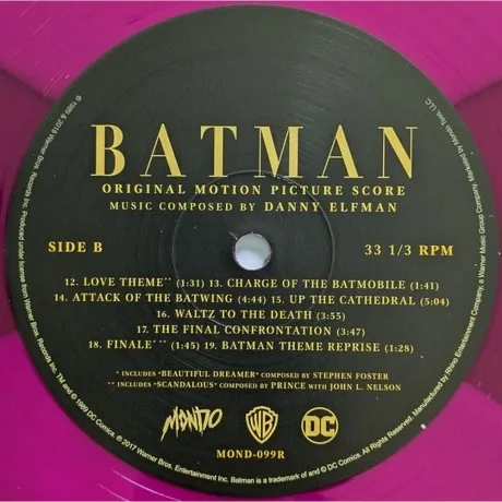 Саундтрек к фильму «Batman» включает в себя культовую партитуру Дэнни Эльфмана под управлением Ширли Уокер. Лимитированный коллекционный бокс-сет, цветной винил + комикс. Саундтрек к фильму «Batman» возвращается в коллекционной коробке с цветным винилом с легендарной музыкой Дэнни Эльфмана и комиксом DC «Batman 89», блестящим продолжением истории сценаристов Сэма Хэмма, Джо Куинонеса и Леонардо Ито. Бокс поставляется в новом дизайне с обложкой с иллюстрациями художников серии Куинонеса и Паоло Риверы. Издание включает аннотации Джона Такиса и оригинальные иллюстрации Киллиана Энга.