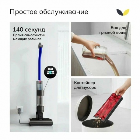 Пылесос Dyson WashG1 WR01 - это инновационное устройство, объединяющее в себе функции пылесоса и мойки полов. Этот беспроводной пылесос предназначен для влажной уборки, предлагая эффективное решение для удаления различных видов загрязнений с пола. Одной из ключевых особенностей Dyson Wash G1 является его способность удалять липкие и стойкие загрязнения, включая волосы, благодаря автоматическому разделению твердых и жидких отходов. Это позволяет гигиенично очищать контейнер от мусора, не пачкая руки.
