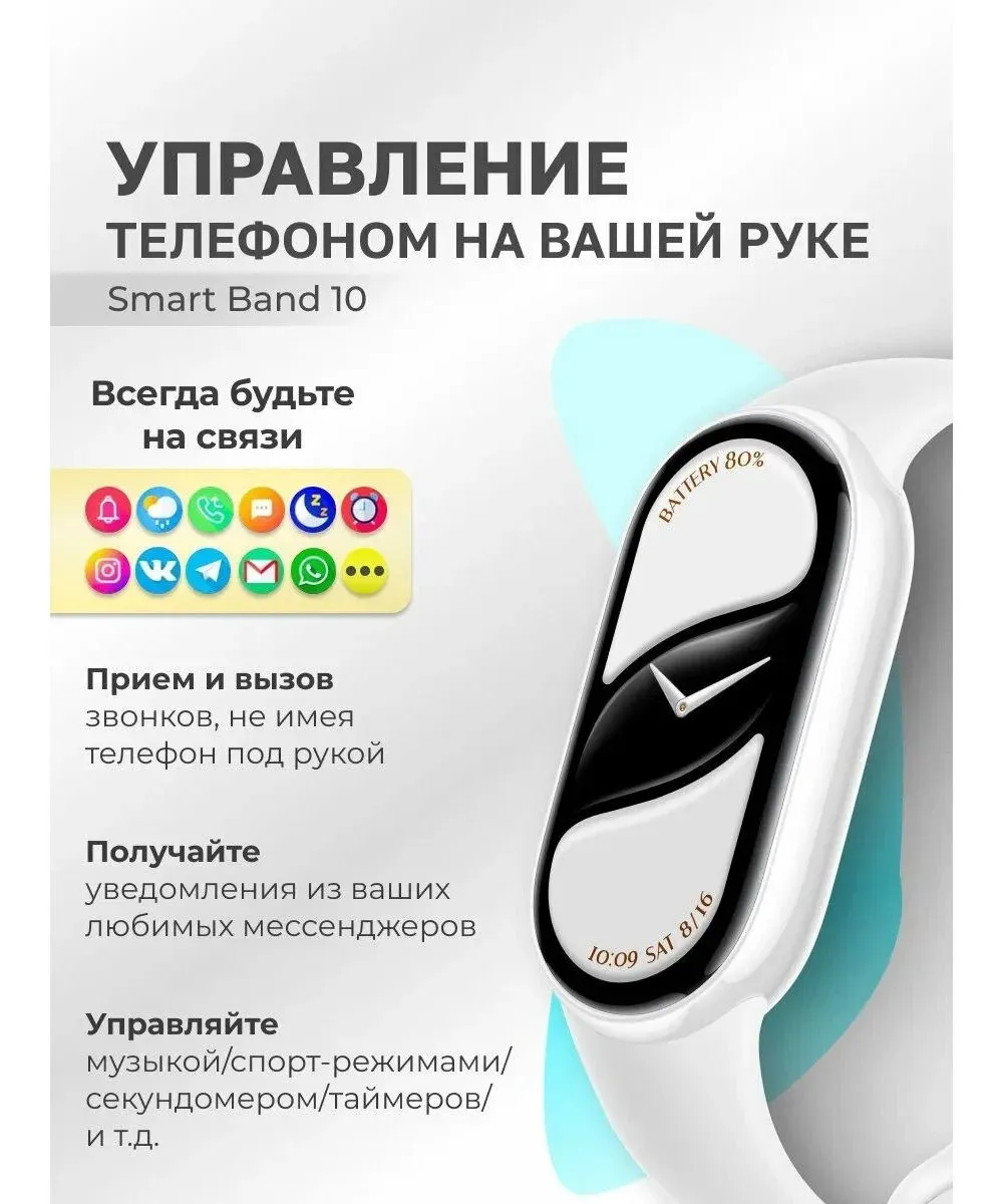 Умные часы Xiaomi Smart Band 10 (BHR07PSGL) Glacier Silver - по цене 3761 руб. в интернет-магазине КотоФото. Подробная информация находится на карточке товара - описание, характеристики, фото. Забрать заказ можно из пунктов самовывоза или оформить доставку на дом. Если останутся вопросы, звоните - 8(812)426-98-99 в Санкт-Петербурге.