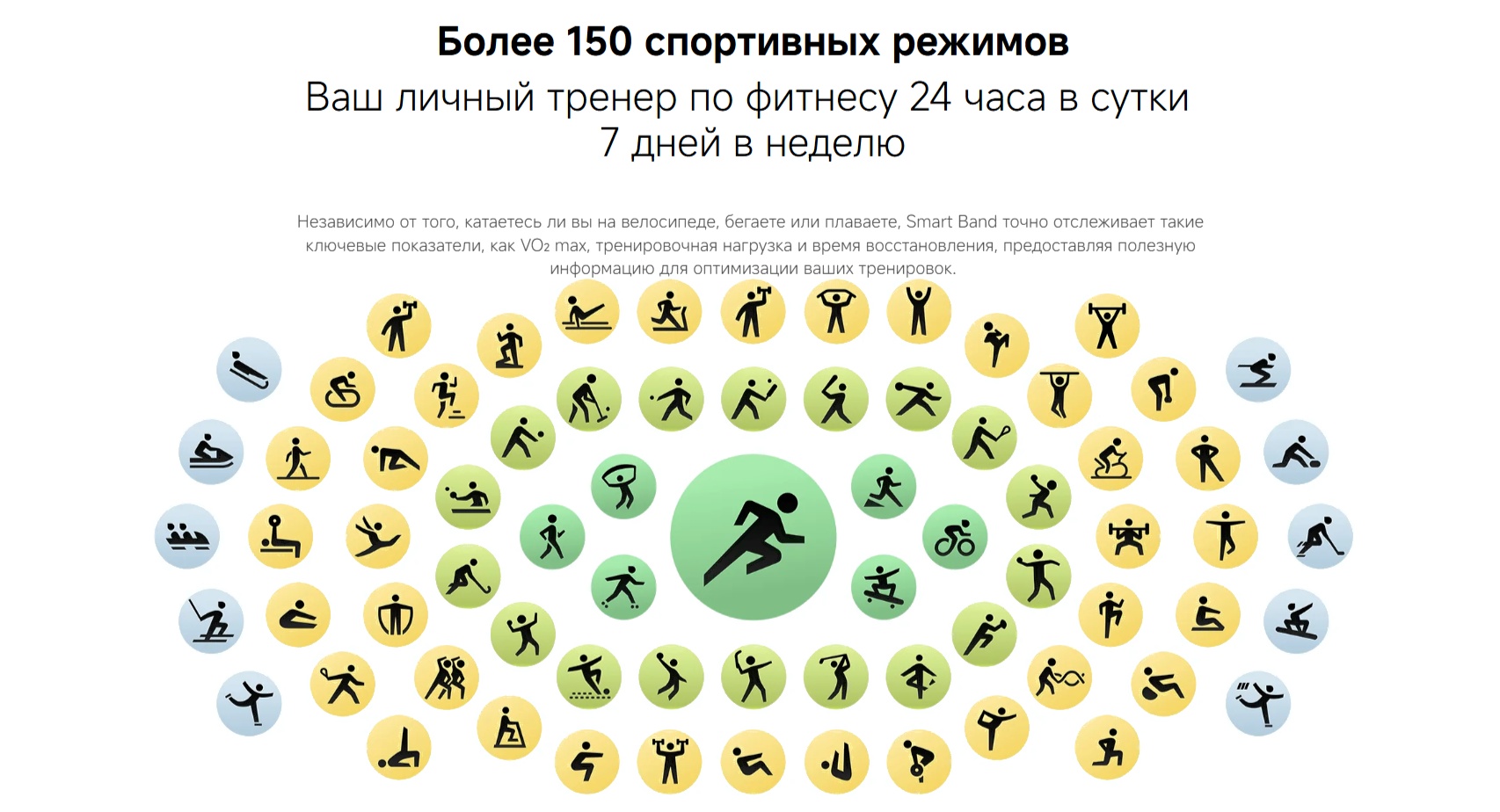 Брал для контроля здоровья - браслет отлично отслеживает сон, пульс, уровень стресса и насыщение крови кислородом. Есть более 150 режимов тренировок, включая йогу и пилатес.