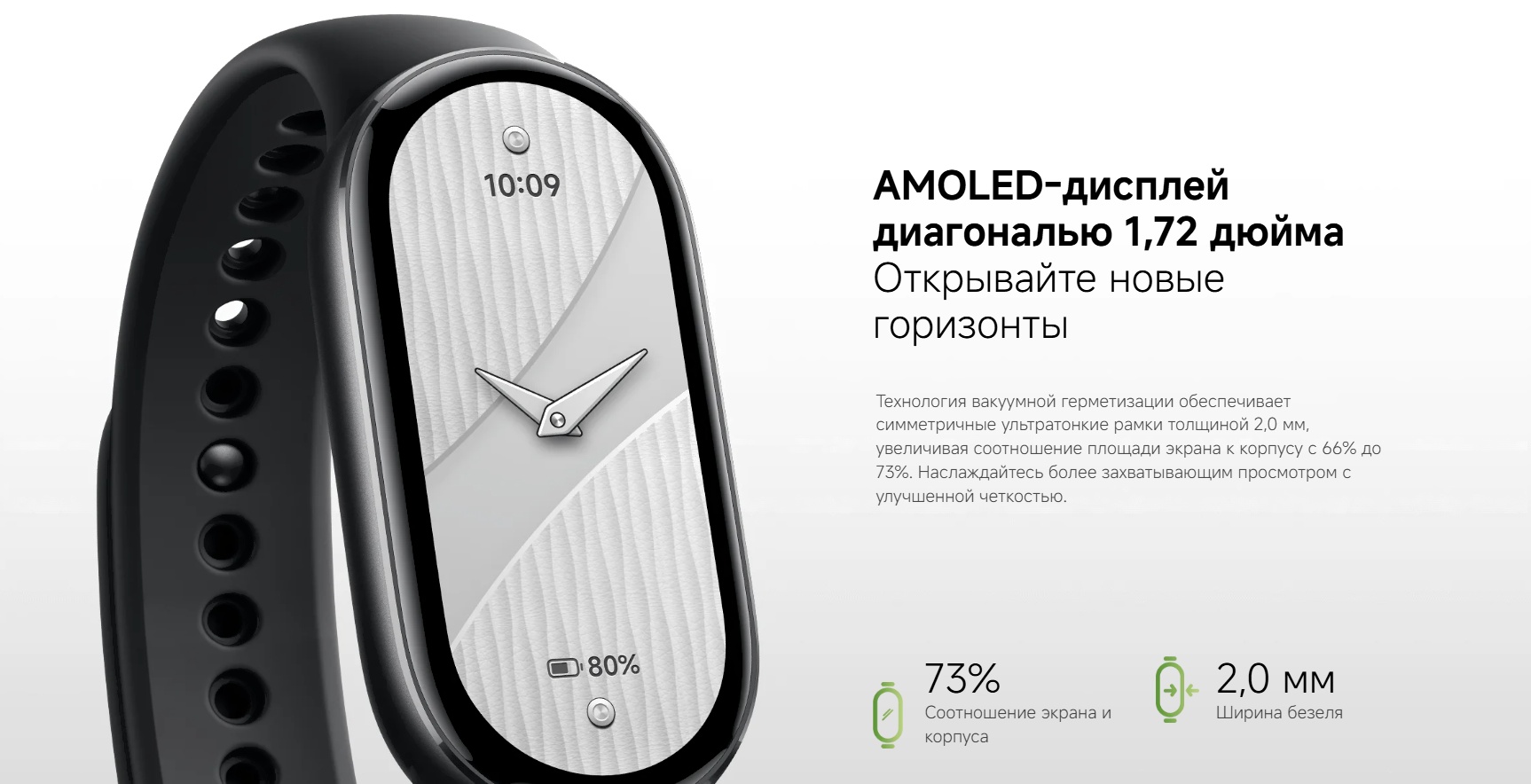Браслет в цвете Mystic Rose выглядит очень элегантно, подходит как к спортивной, так и к повседневной одежде. AMOLED-экран яркий и четкий, все данные отлично читаются даже на солнце. Особенно порадовала увеличенная до 1.5" диагональ!