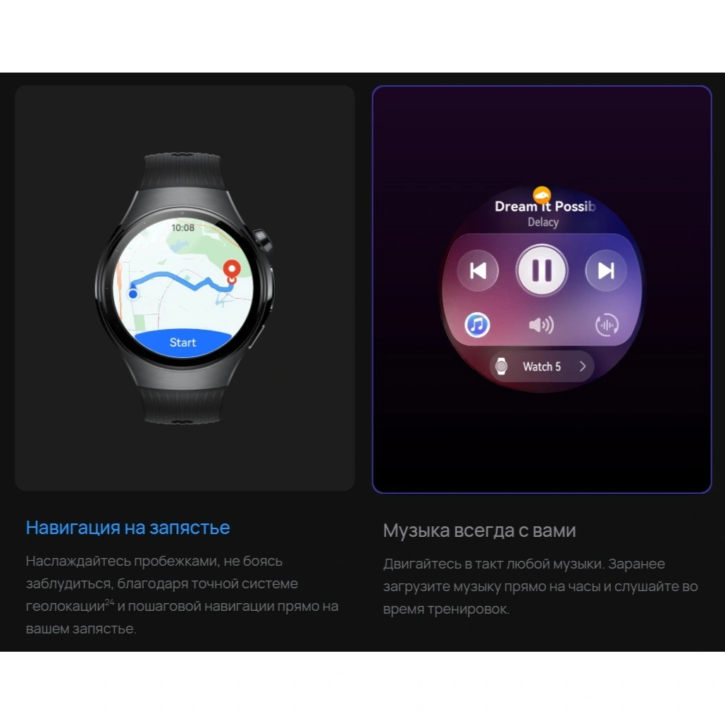 Смарт-часы HUAWEI WATCH 5 имеют цветной экран, физические кнопки и поворотную кнопку. Часы оснащены eSIM-картой, поддерживают выполнение голосовых вызовов, приложения HUAWEI Музыка, «Здоровье сердца» и «Календарь цикла», функции измерения частоты пульса, снятия ЭКГ, TruSleep, мониторинга уровня кислорода в крови, теста апноэ во сне, отслеживания дыхания во сне, измерения температуры тела, отслеживания показателей сердечно-сосудистой системы, контроля сахара в крови, мониторинга состояния на большой высоте, мониторинга тренировок, уведомлений, умного подключения, голосового помощника, выполнения мобильных платежей, GNSS, NFC, Wi-Fi, широкий ряд циферблатов и беспроводную зарядку. Устройство подойдет как для повседневного использования, так и для тренировок на профессиональном уровне.