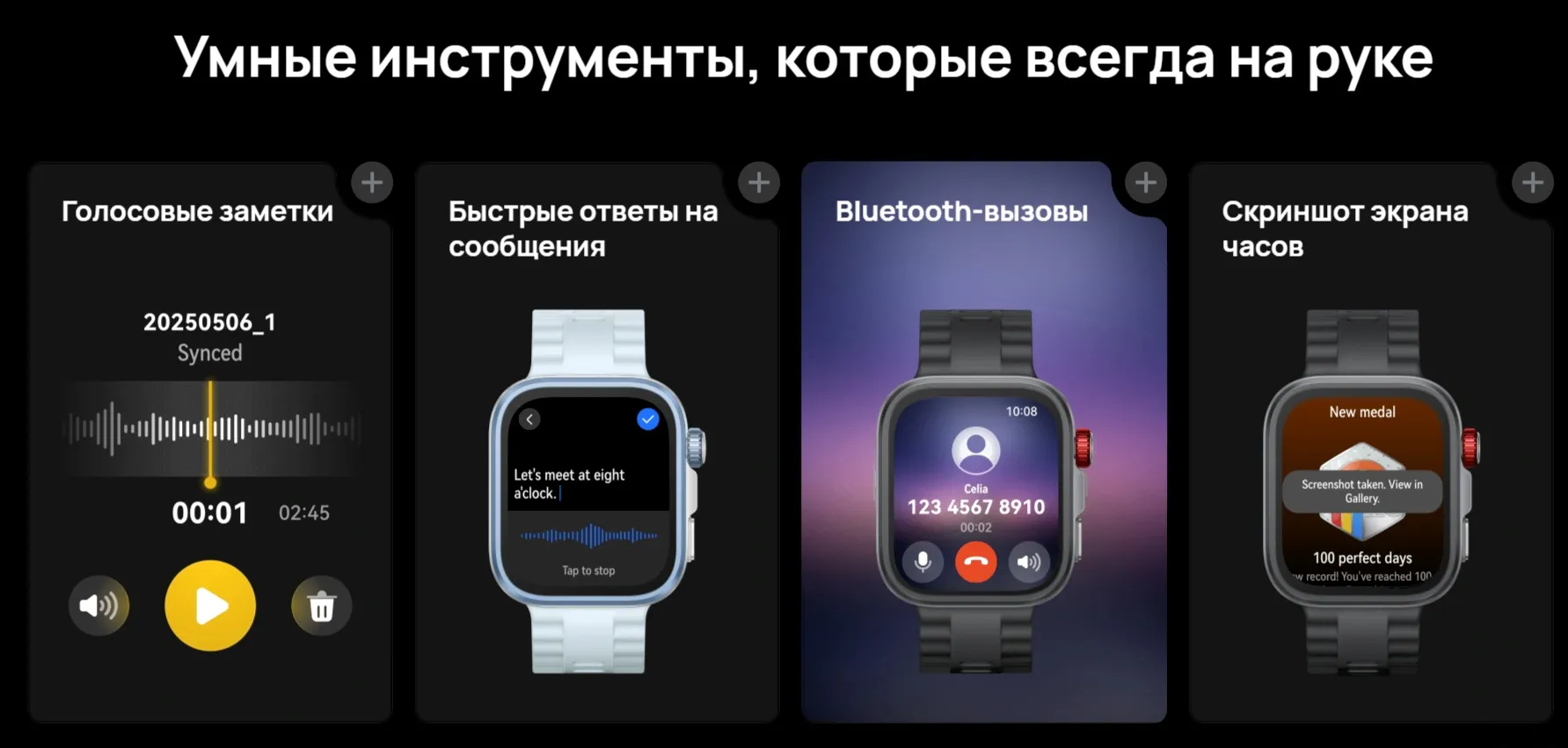 смена дизайна циферблата, голосовые сообщения