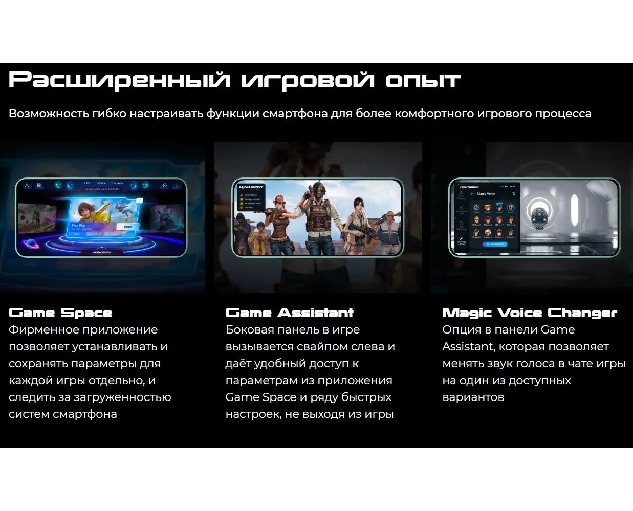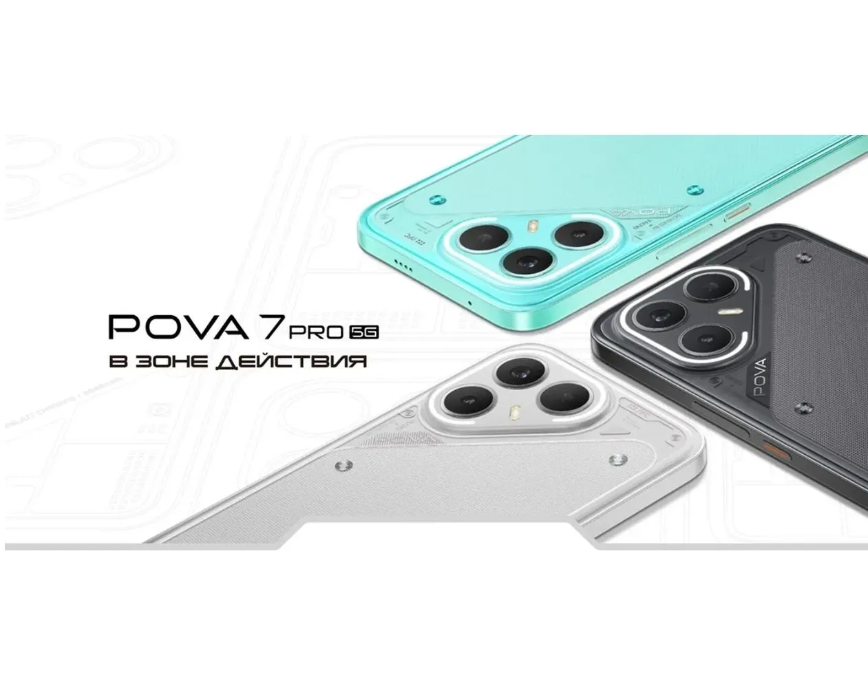 Вдохновлённый промышленным дизайном облик Tecno POVA 7 Pro 5G делает смартфон запоминающимся. Объёмные детали снаружи, а внутри уникальный шрифт и более 300 стилизованных значков приложений. Треугольный блок камер обрамлён светодиодным сигнальным глифом, который отображает уведомления, игровые действия, звонки и многое другое. Яркий 6.78” AMOLED-экран с разрешением 1.5K и частотой обновления 144 Гц выдаёт плавную и детализированную картинку, а также защищён от падений и ударов закалённым стеклом Corning Gorilla Glass 7i. Стереозвук от Dolby Atmos обеспечивает полное погружение в контент. Комфортное взаимодействие со смартфоном и улучшенное мобильное соединение обеспечивает процессор MediaTek Dimensity 7300 Ultimate. Перейдите на высокий уровень мобильного гейминга с Tecno POVA 7 Pro 5G. Благодаря игровому движку HyperEngine частота обработки кадров возрастает на 20%, а 11-слойная система охлаждения поддерживает оптимальную температуру устройства. Аккумулятор ёмкостью 6 000 мАч обеспечивает работу в течение долгого времени. А если заряд на исходе — быстрая зарядка 45 Вт или беспроводная 30 Вт восстановит запас энергии смартфона в короткие сроки. Смартфон также может не дать разрядиться другому устройству благодаря реверсивной зарядке 10 Вт.