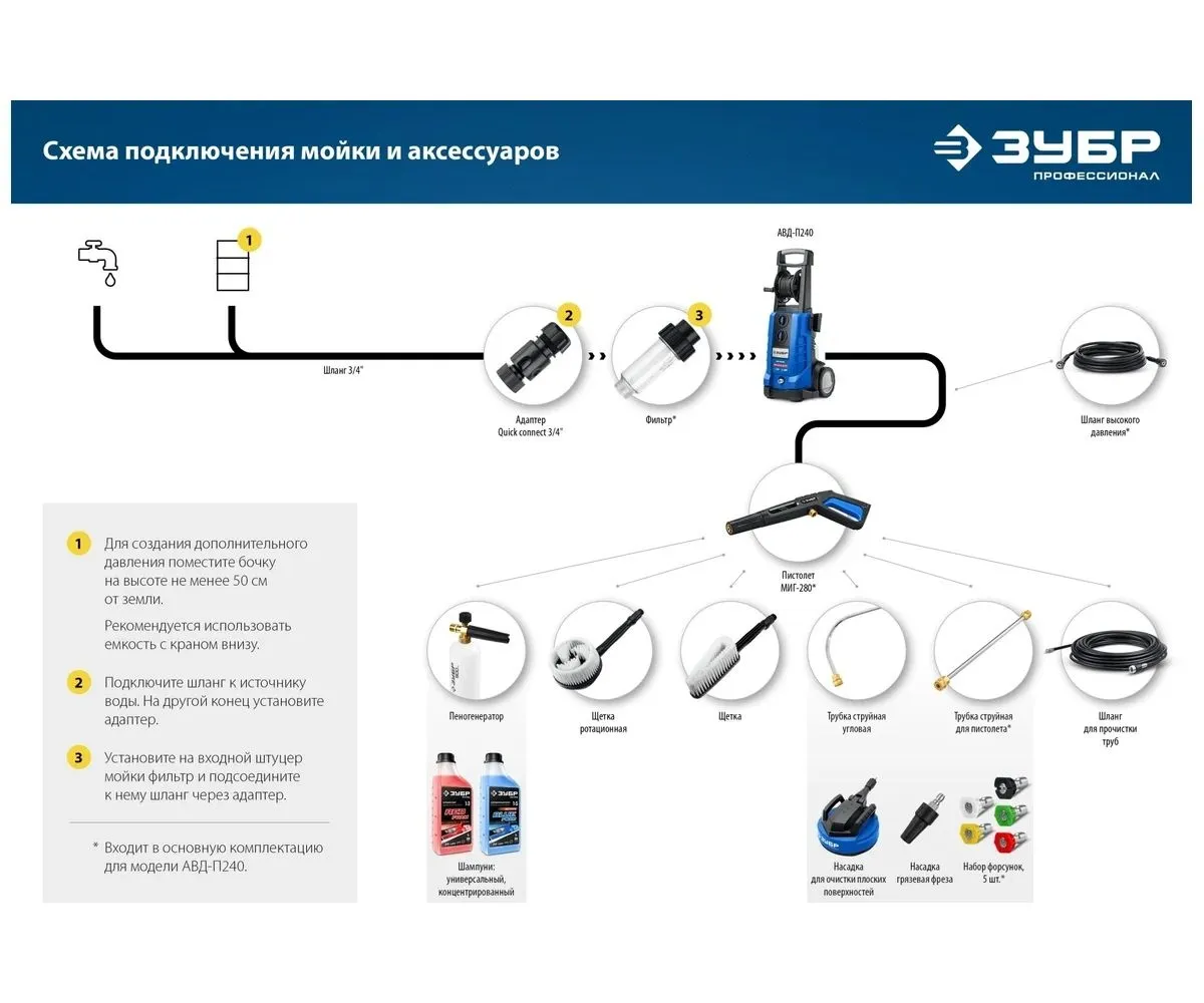 Качественные комплектующие для расширения функциональности моек ЗУБР. Примененяется для удлиннения ствола пистолета и подключения аксессуаров
