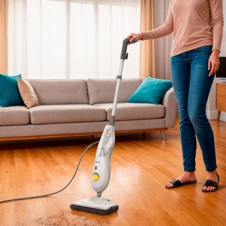 Паровая швабра — универсальное устройство, которое поможет избавиться от пыли и грязи с помощью мощной струи пара, а также продезинфицирует поверхность. Данный прибор очистит напольные покрытия без каких-либо химических средств — исключительно паром.