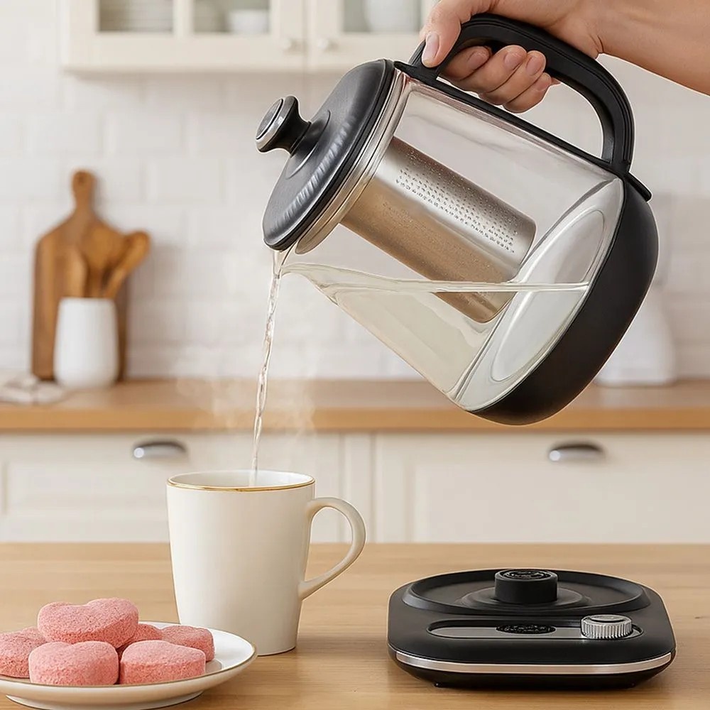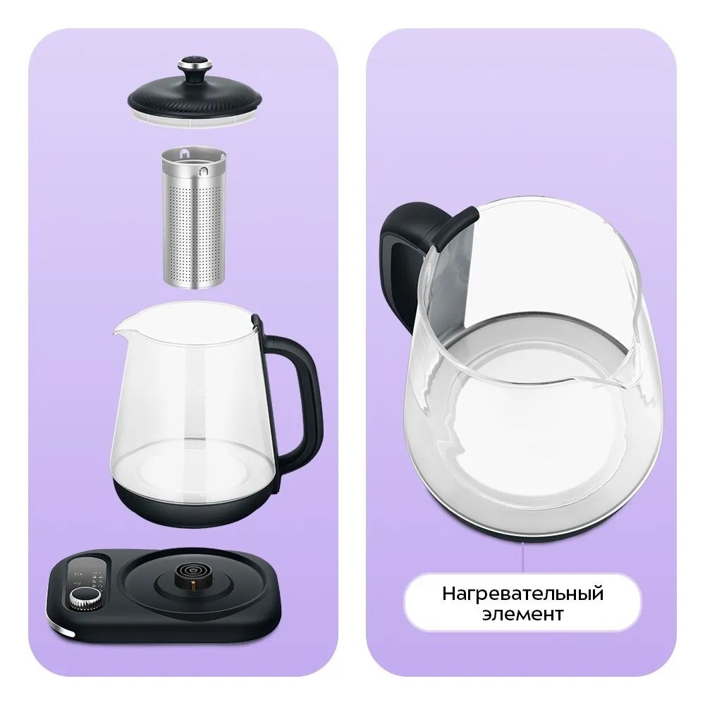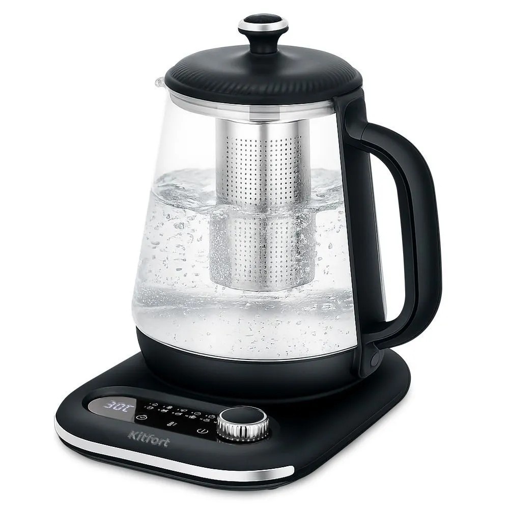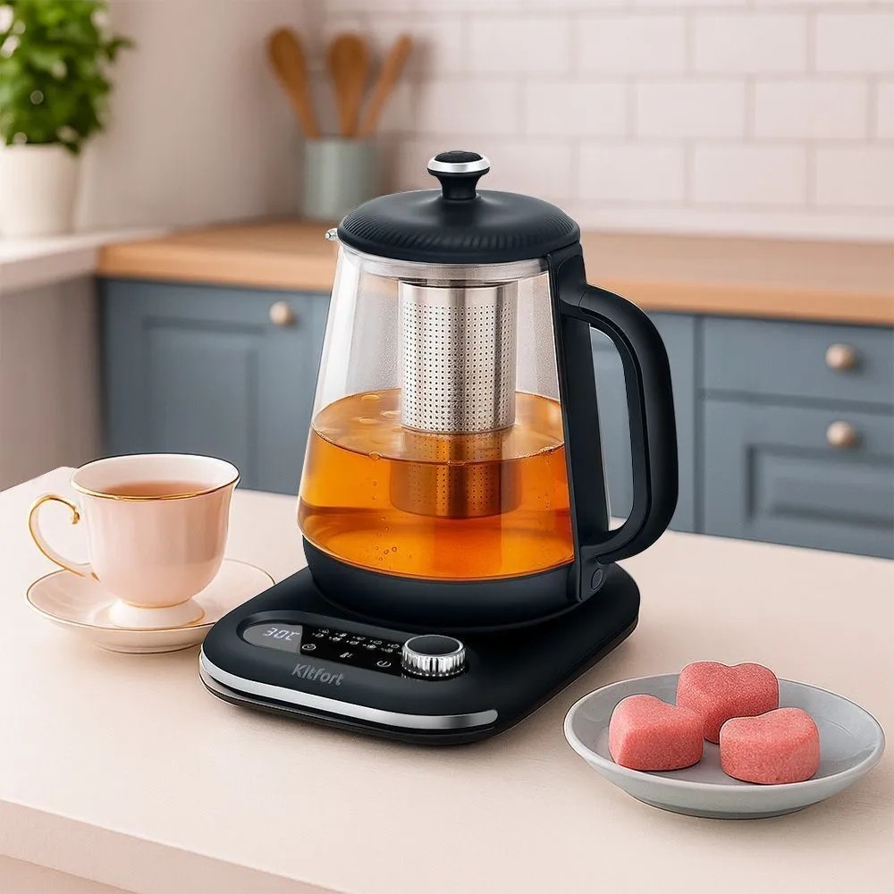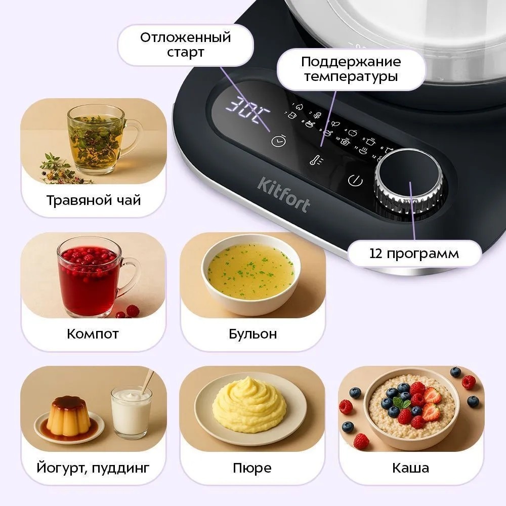 Электрический чайник КТ-6756 не только кипятит воду, но и заменяет несколько приборов для приготовления напитков и блюд. Он поддерживает температуру воды от 45 до 90 градусов, что идеально для заваривания чая разных сортов.