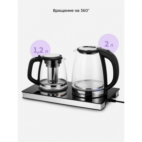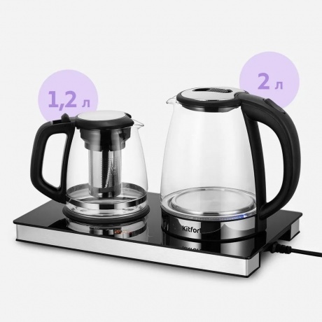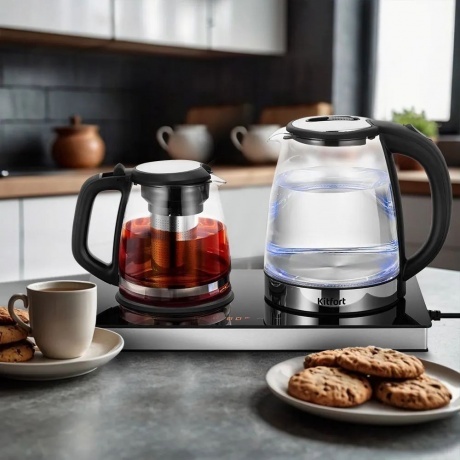 Чайный набор КТ-6737 представляет собой идеальное сочетание функциональности и удобства. Вскипятите воду, заварите чай или кофе в заварочном чайнике, а встроенная платформа с подогревом поможет сохранить готовый напиток теплым.