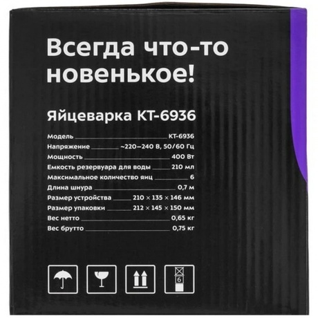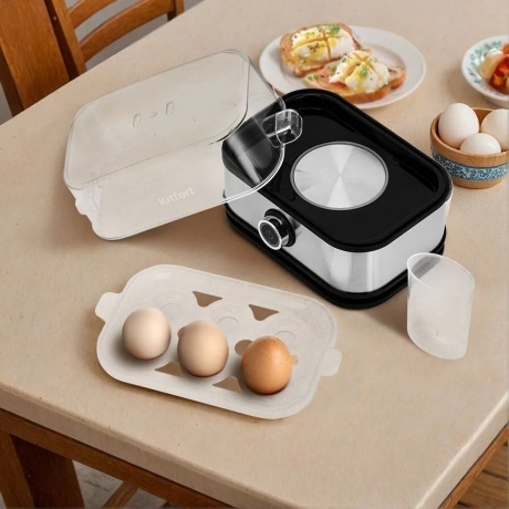 Яйцеварка КТ-6936 – это идеальные яйца за считанные минуты. Готовьте яйца на пару: нежные всмятку или плотные вкрутую. Просто, быстро и без хлопот — ваш идеальный завтрак готов!