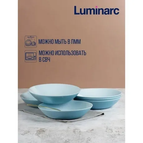 Суповая тарелка LUMINARC ДИВАЛИ представляет собой практичное и стильное решение для сервировки первых блюд. Круглая форма и глубокая конструкция обеспечивают удобство при подаче супов и других жидких блюд. Тарелка изготовлена из высокопрочного стекла, которому не страшны ни удары, ни перепады температур.Так же к плюсам данного материала можно отнести абсолютно гладкую поверхность, препятствующую проникновению бактерий и посторонних запахов в посуду. Подходит для мытья в посудомоечной машине, что облегчает уход за тарелкой.