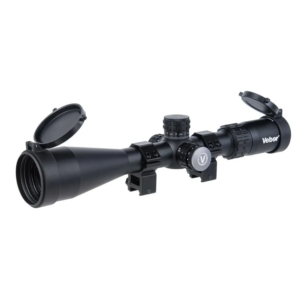 Veber Пневматика III 6-24X50 SF IR – надежный оптический прицел c увеличением от 6х до 24х, объективом диаметром 50 мм и тактической прицельной сеткой с подсветкой. В комплекте с прицелом идут крепежные кольца для установки на оружие с планкой типа Weaver.