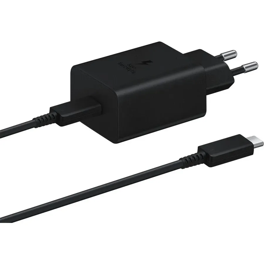 Сетевое зарядное устройство Samsung EP-T4510 рассчитано на использование широчайшего диапазона входного напряжения – от 100 до 240 В. Кабель с разъемами USB Type-C искать не придется: он входит в комплект. Значительная (1.8 м) длина кабеля способствует удобству подключения. Модель имеет практичный черный цвет. Любые загрязнения на темном фоне малозаметны.