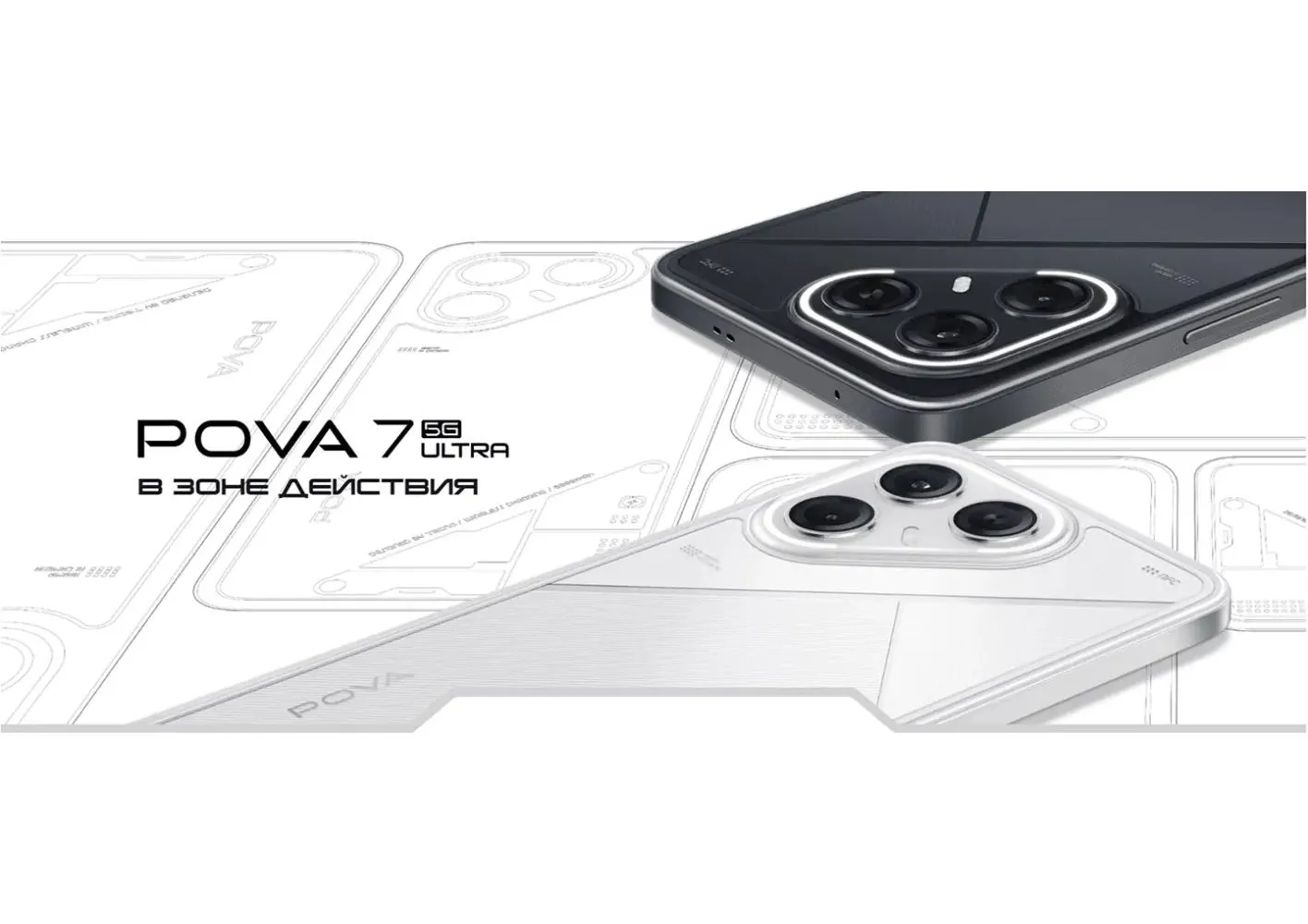 Флагманский смартфон со встроенным искусственным интеллектом TECNO AI и большими возможностями для мобильного гейминга. Умный ассистент Ella с поддержкой русского языка выполняет задачи любой сложности — от обработки фото до вызова такси. В Tecno POVA 7 Ultra 5G также встроены другие функции, реализуемые с помощью искусственного интеллекта TECNO AI: генерация текстов, решение задач, перевод разговоров в реальном времени, расшифровка аудио. Tecno POVA 7 Ultra 5G получил мощный чипсет MediaTek Dimensity 8350 Ultimate, который обеспечивает не только высокую производительность, но и улучшенное качество сотовой связи. Смартфон имеет 256 Гб постоянной памяти и 12 Гб оперативной с возможностью виртуального расширения вдвое. Игровой движок HyperEngine увеличивает скорость реакции во время мобильного гейминга на 24% по сравнению с предыдущим поколением. А 12-слойное охлаждение с 3D-испарительной камерой исключает перегрев смартфона. Впервые в смартфоне TECNO применена технология трассировки лучей для детализации графики некоторых игр. Большая ёмкость аккумулятора 6 000 мАч поддерживает работу смартфона в течение всего дня и даже больше. Быстро пополнить заряд поможет беспроводная 30 Вт или комплектная ультра-зарядка 70 Вт. Tecno POVA 7 Ultra 5G может делиться энергией с другими устройствами благодаря реверсивной зарядке 10 Вт, что превращает смартфон в пауэрбанк. Яркий AMOLED-экран диагональю 6.67? с высоким разрешением 1.5K и частотой 144 Гц передаёт сочные цвета и обеспечивает невероятно плавную картинку. Дисплей защищён закалённым стеклом Corning Gorilla Glass 7i. А стереодинамики с поддержкой Dolby Atmos создают эффект погружения в просматриваемый контент. Общайтесь на расстоянии до 1 километра даже тогда, когда нет связи с помощью FreeLink. Приложение в смартфоне Tecno POVA 7 Ultra 5G поддерживает звонки и сообщения по Bluetooth в отсутствие сигнала мобильной сети. А алгоритм PinPoint Nav 2.0 помогает точно определять геолокацию в городе и на открытых пространствах. Технологичный дизайн сочетает простоту и практичность. Под прозрачной панелью — объёмные детали, а в меню — уникальный шрифт и более 300 стилизованных значков приложений. Треугольный блок камер обрамлён светодиодным сигнальным глифом, который отображает уведомления, игровые действия, звонки и многое другое.