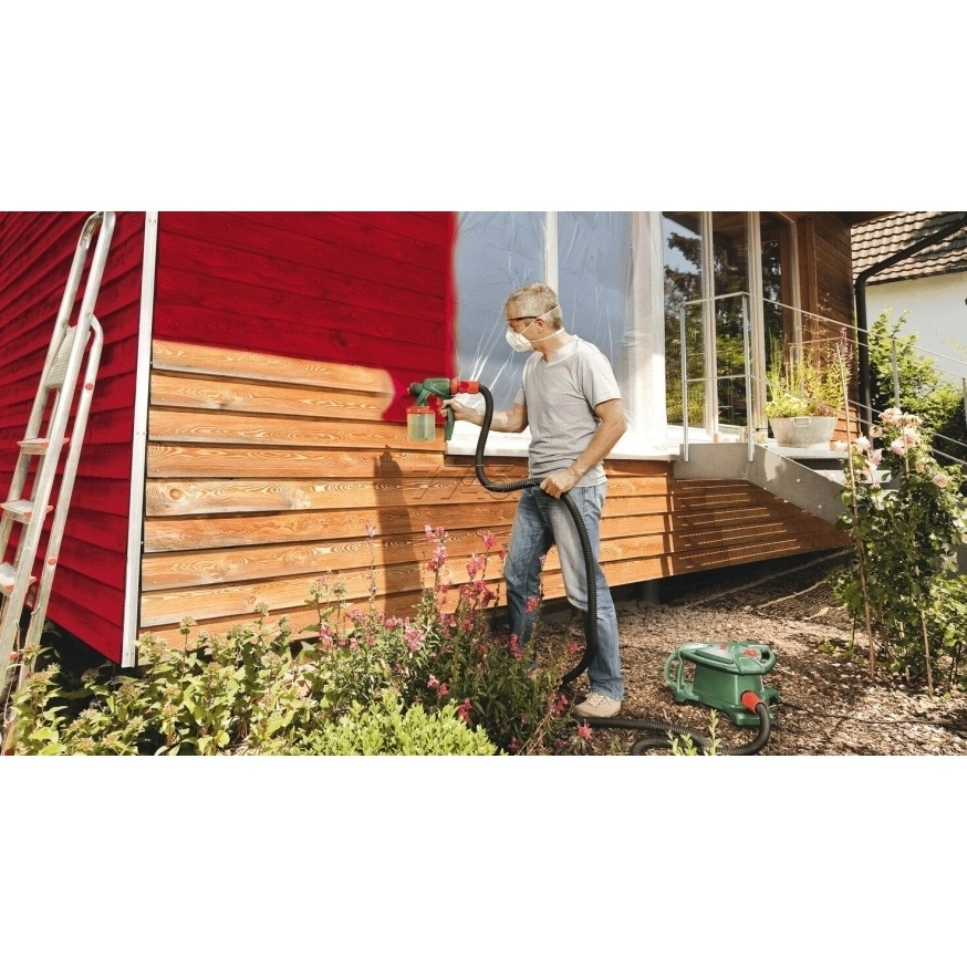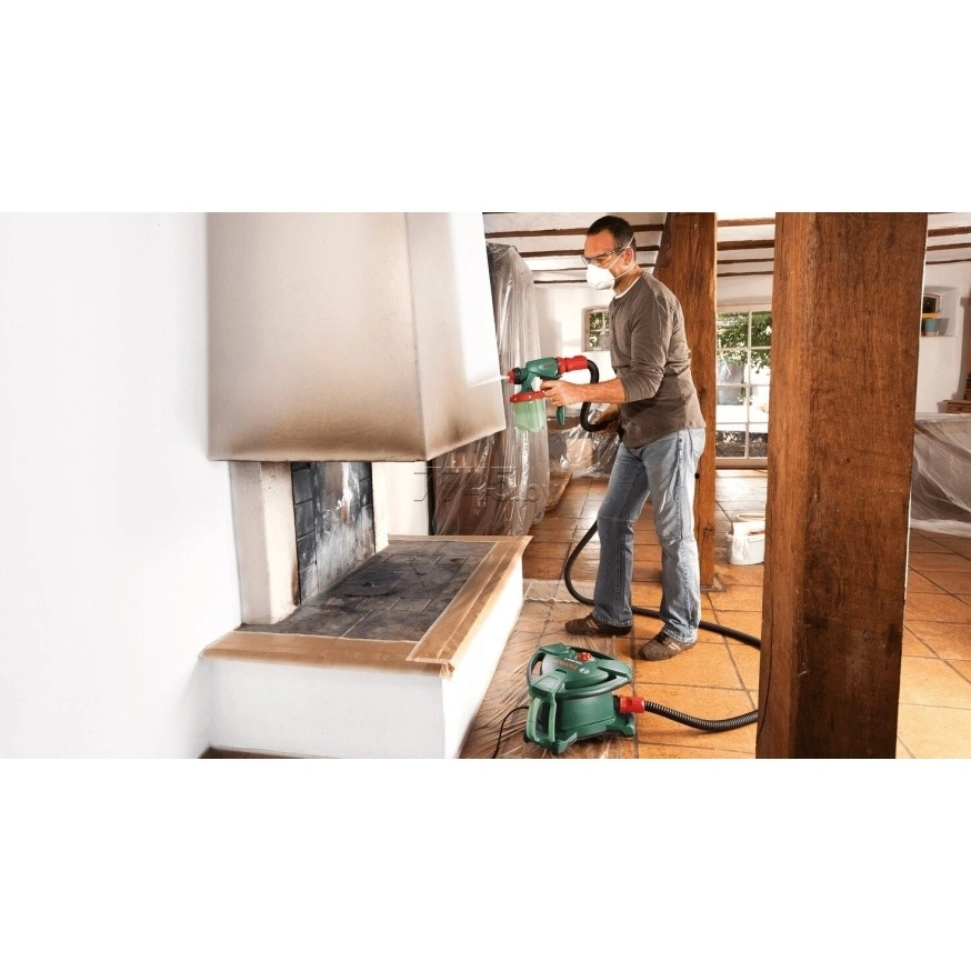 Краскораспылитель электрический BOSCH PFS 7000 (0603207400) относится к серии инструментов для домашнего использования DIY и предназначен для быстрого и ровного покрытия текстурированных поверхностей и кромок. Самый мощный и универсальный краскораспылитель в своем классе. Система распыления ALLPaint: распыляет краску и лак. Практичная система SDS для быстрого наполнения краски и простой очистки. Двигатель мощностью 1400 Вт обеспечивает лучшее в своем классе нанесение и мгновенное получение качественного результата. Превосходная гибкость и мобильность благодаря 4-метровому шлангу. Быстрое нанесение краски со скоростью 4 м.кв./мин для крупных и очень крупных проектов как внутри так и снаружи дома. Краска равномерно распыляется тонкой дисперсией на все поверхности без образования капель. Два больших контейнера для краски емкостью 1000 мл экономят драгоценное время, сводя к минимуму количество заправок во время работы. Плавная регулировка объема воздуха - для настройки интенсивности нанесения краски.