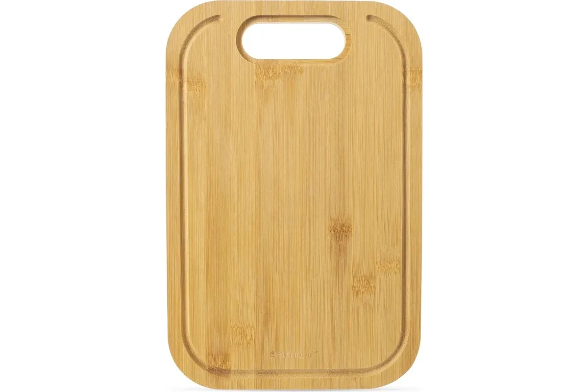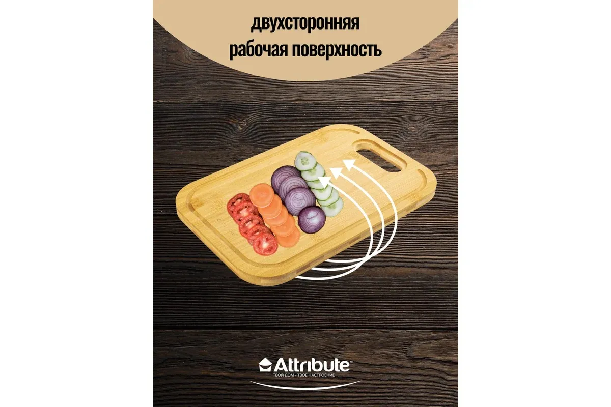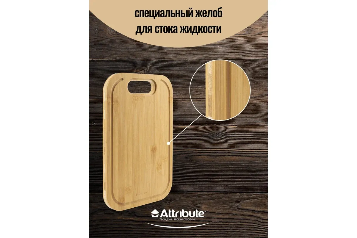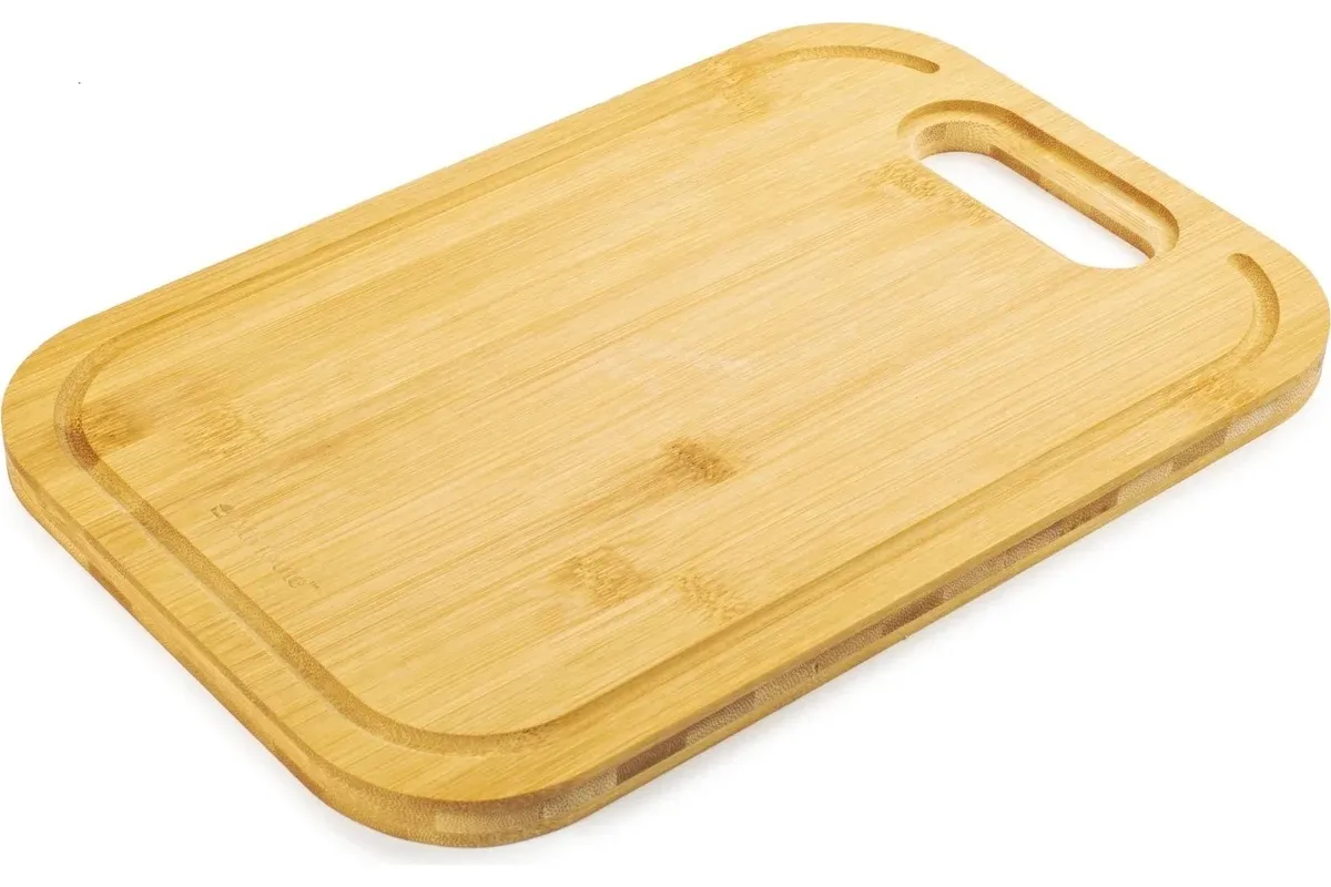 Разделочная доска должны быть на каждой современной кухне. Вы можете выбрать подходящий размер такого аксессуара для кухни или приобрести доски разных размеров. Разный размер досок помогает шинковать и резать отдельные группы продуктов, соблюдать гигиену при использовании сырых и вареных продуктов. Разделочная доска из бамбука отлично подходит для нарезки самых разных продуктов. Это могут быть сырое мясо, рыба, овощи, готовая пища. Кроме того, подобные изделия из бамбука можно считать многофункциональными, так как на них можно без опасения ставить горячие кастрюли, сковороды и использовать их в качестве подставки. Стоит отметить, что такой кухонный аксессуар из бамбука совершенно не боится перепада температур. Разделочной доской из бамбука очень удобно пользоваться, она легкая, гладкая, долговечная. Доска может стать украшением интерьера кухни, а не только практичным аксессуаром. Благодаря тому, что это довольно-таки прочный и износостойкий материал, такая доска длительное время не утратит свой первоначальный вид. Бамбуковая посуда прекрасно подойдет для подачи различных блюд и в качестве сервировочной сырной доски для вина, закусок, пиццы, канапе, суши и роллов, мяса, сыра, стейка, шашлыка, фруктов или овощей, а также может быть использована в качестве подставки для горячего, столика-подноса для завтрака в постель. Поверхность нашего кухонного аксессуара оснащена неглубоким желобком по краям.