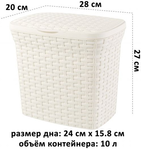 Купить Контейнер для стирального порошка РОТАНГ 10л слоновая кость - по цене 656 руб. в Санкт-Петербурге с доставкой или самовывозом. Заказ можно оформить на нашем сайте kotofoto.ru или по телефону 8(812)426-98-99. Вы можете забрать товар в одном из пунктов самовывоза в Санкт-Петербурге или оформить доставку на дом в удобное для Вас время.